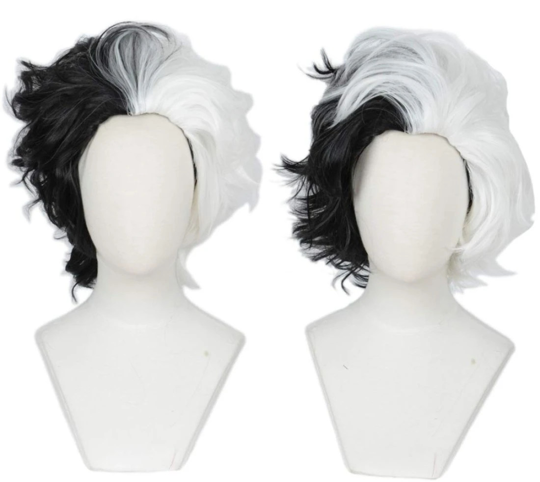 Linfairy Half White and Half Black 2 Tone Wig Halloween Costume Cosplay Wig for Women