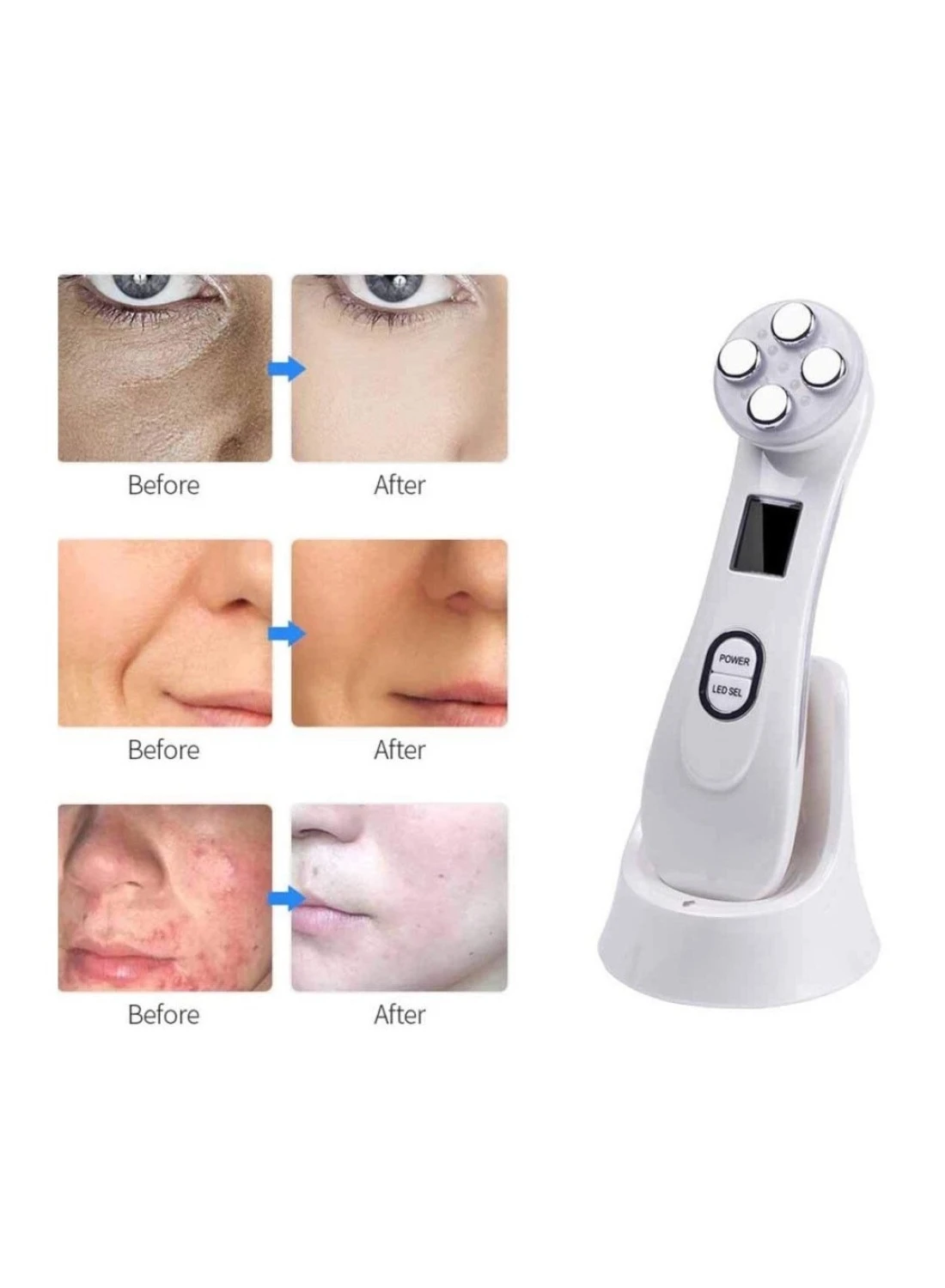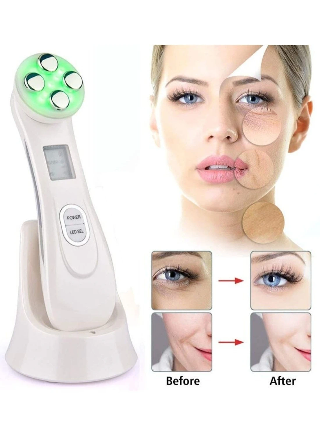 جهاز تجميل شد الجلد 5 في 1 ، جهاز تشديد الوجه بإضاءة ليد فوتون ، تجديد شباب الجلد EMS ميزوثيرابي لشد الوجه وعلاج الجمال