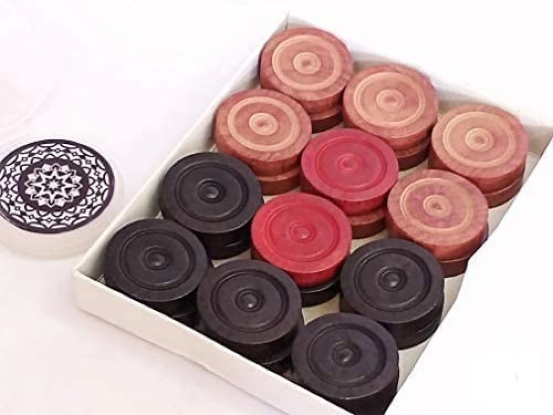 ULTIMAX Professional Carrom Wooden Game Coins And Striker Set,Standard Size Carrom Tournament Striker Wooden Checkers- 24 Pieces With Cover Case + 1 Striker