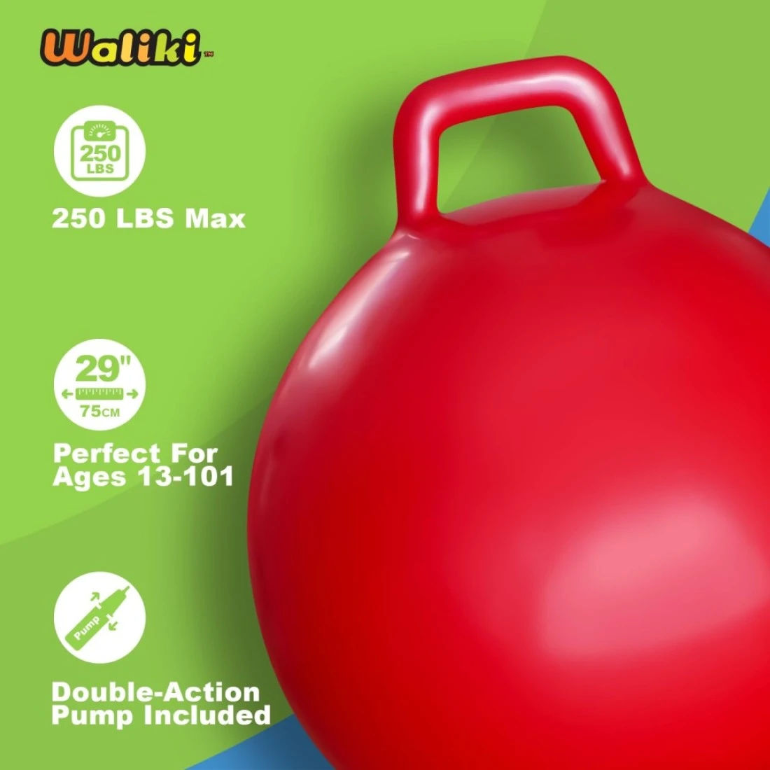WALIKI Hopper Ball Hippity Hop Jumping Hopping Therapy Ball Relay Races Red Adults 16101 2975CM