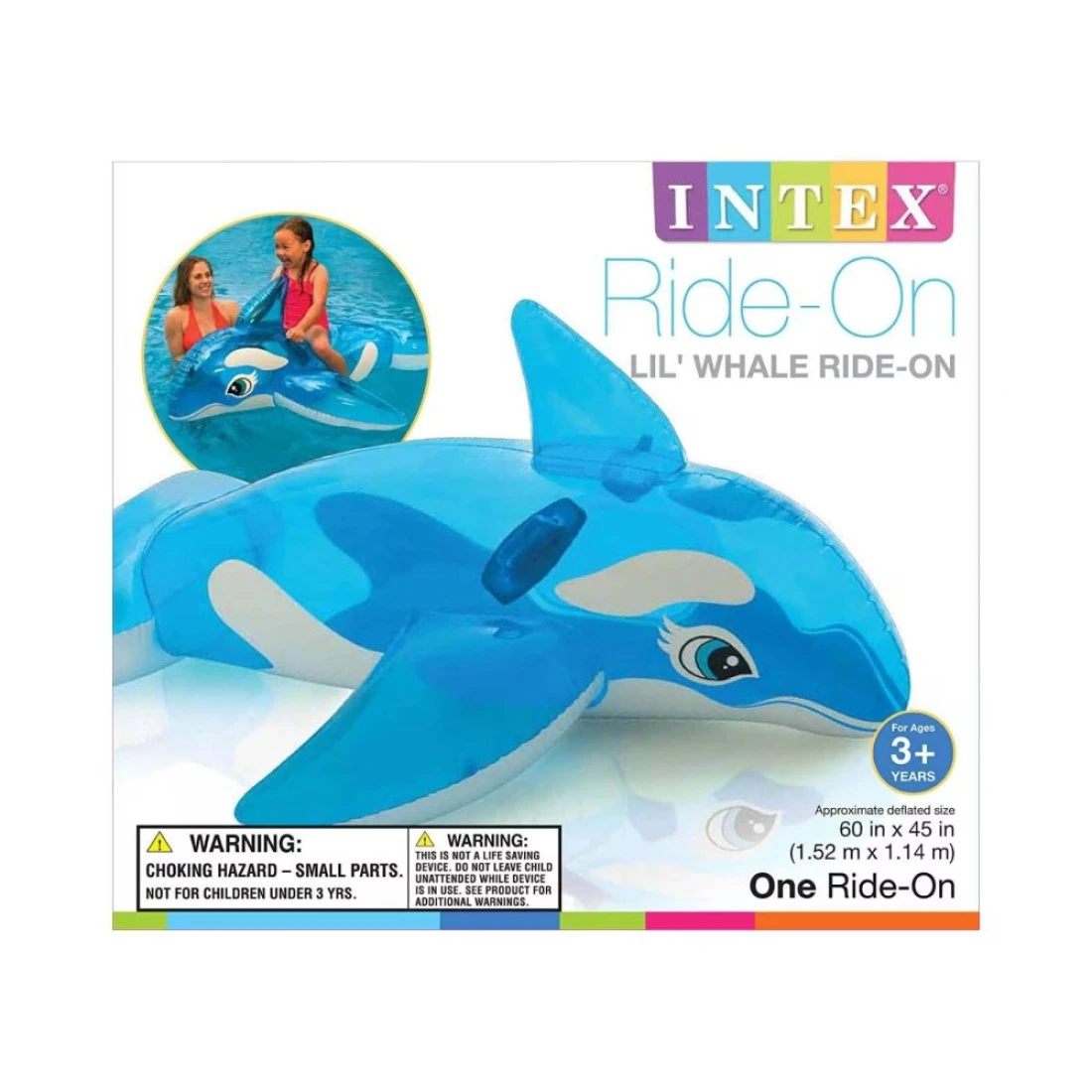 إنتكس عوامة سباحة قابلة للنفخ للركوب على شكل حوت صغير - أزرق 60 × 24 بوصة 58523NP