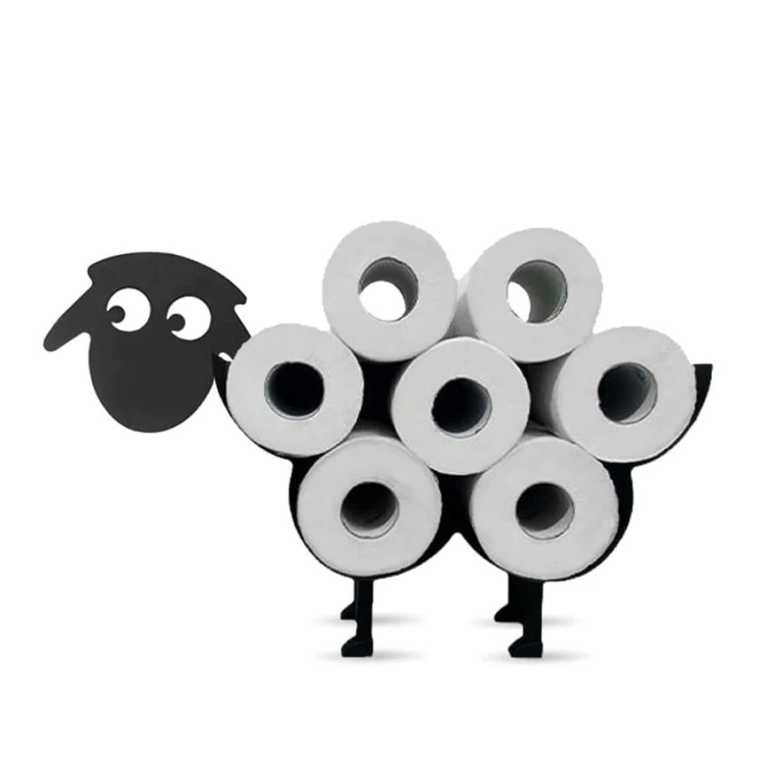 AmaQueen Metal Toilet Tissue Paper Roll Holder Storage, Cute Sheep Novelty Black Bathroom Kitchen Powder Room Decor Wall Art, Fun Accessories Ornament Free Standing and Mounted, 7 Spare Mega Rolls