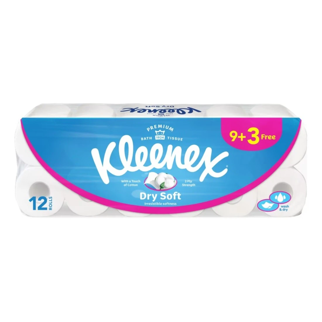 كلينكس مناديل حمام جافة وناعمة من طبقتين، 12 لفافة