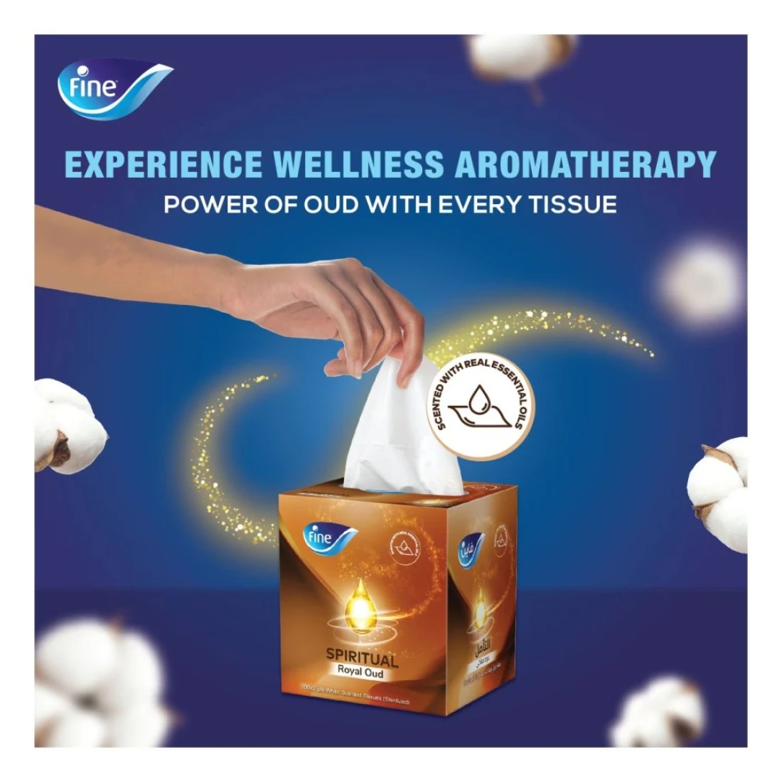 فاين التأمل مناديل وجه بطبقتين برائحة العود الملكي 100 منديل