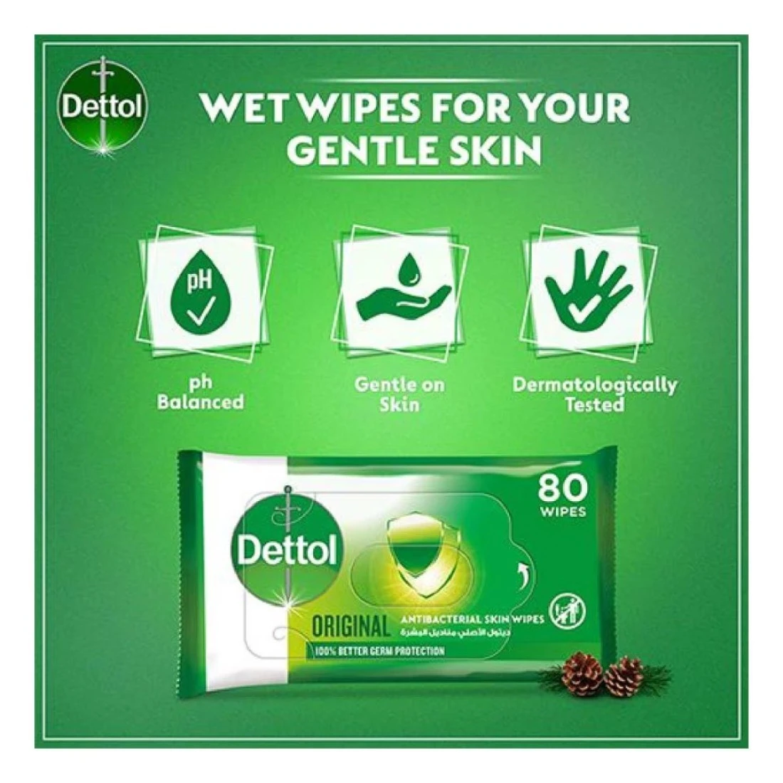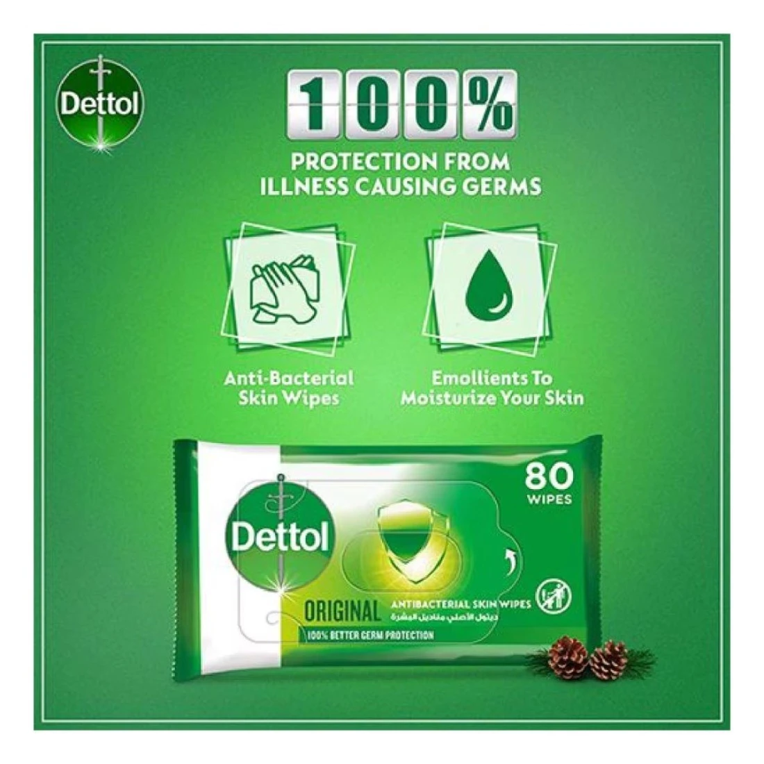 ديتول مناديل أصلية مبللة للبشرة مضادة للبكتيريا 10 مناديل حزمة من 5