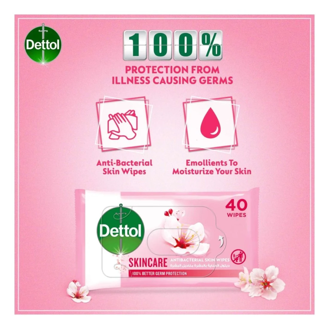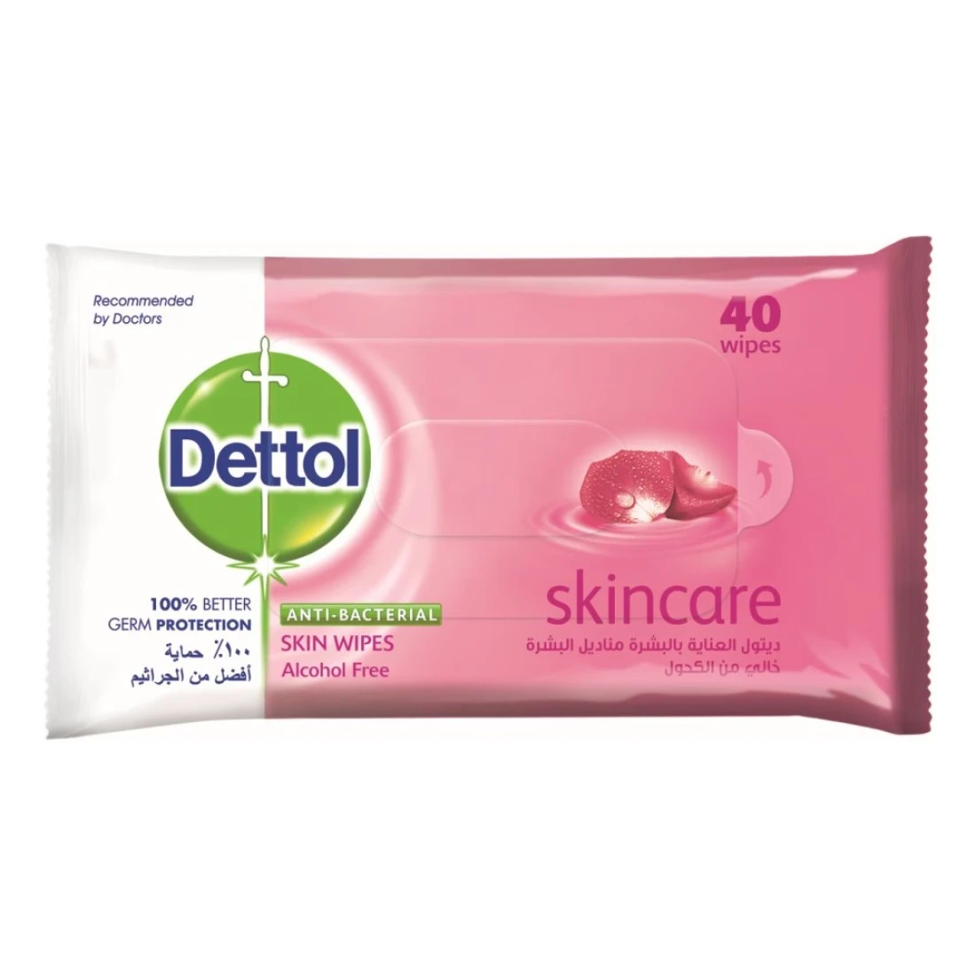 ديتول مناديل مبللة للعناية بالبشرة مضادة للبكتيريا، 40 منديلًا.