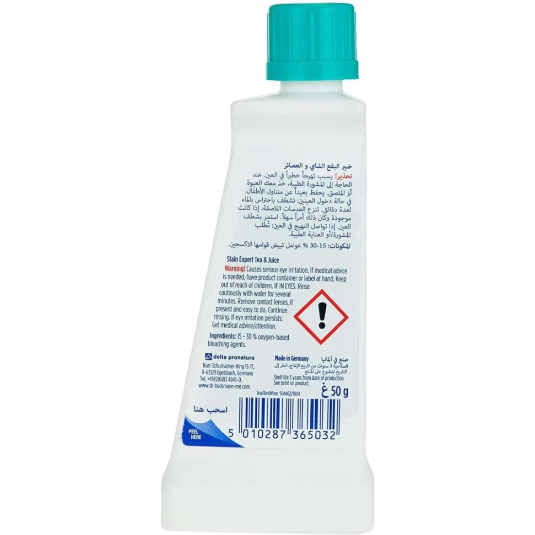 يعد دكتور بيكمان خبير البقع عصير نبيذ الشاي مزيلًا قويًا للبقع مصممًا لمعالجة البقع الصعبة التي يسببها نبيذ الشاي والعصير. بفضل تركيبته المتقدمة، فإنه يتغلغل بعمق في القماش لرفع البقع وإزالتها بشكل فعال، مما يترك ملابسك تبدو منعشة ونظيفة. هذه العبوة التي يبلغ وزنها 50 غرامًا مناسبة لحالات الطوارئ المتعلقة بالبقع أثناء التنقل، مما يضمن قدرتك على معالجة البقع أينما كنت. ثق بخبير البقع من دكتور بيكمان للحفاظ على ملابسك خالية من البقع وتبدو في أفضل حالاتها.