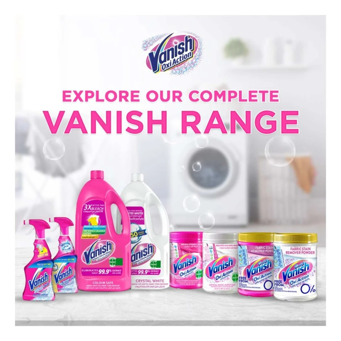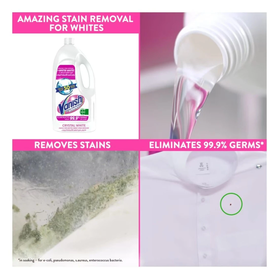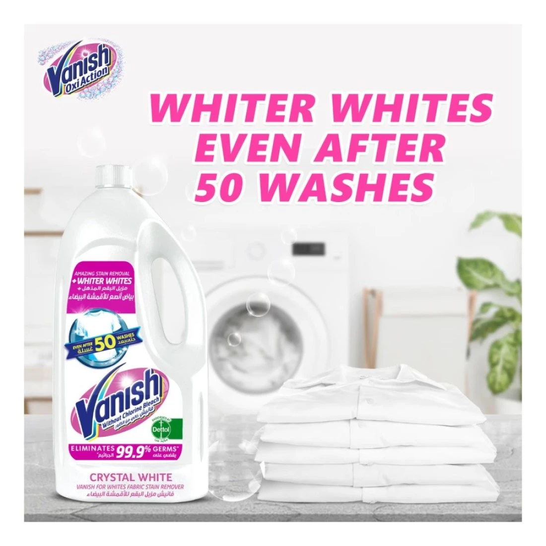 - احمي نفسكِ من الجراثيم الضارة باستخدام سائل مزيل البقع فانيش الذي يزيل 99.9% من الجراثيم.