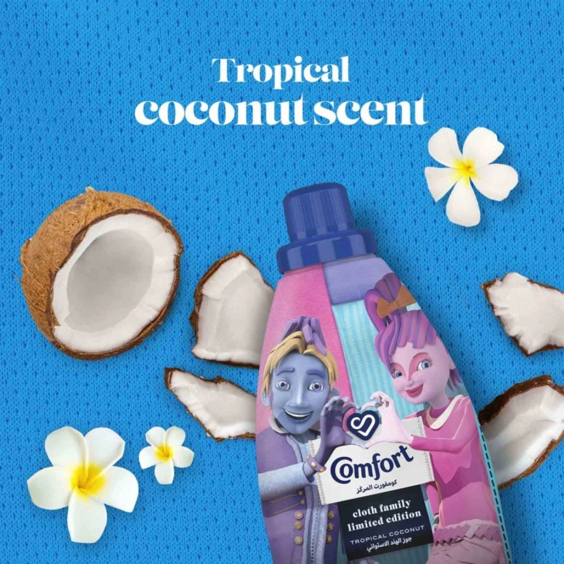 - يعمل ملين الأقمشة المركز من كومفورت بجوز الهند الاستوائي على تليين ألياف ملابسك، مما يجعلها ناعمة للغاية.