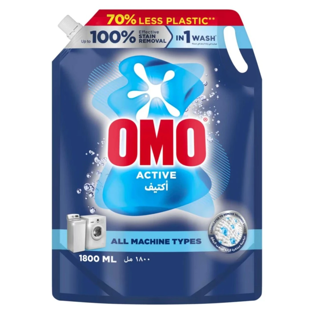 سائل تنظيف الغسيل أومو أكتيف، الآن بمظهر جديد. يوفر سائل أومو أكتيف إزالة بنسبة ١٠٠٪ للبقع في غسلة واحدة فقط*، وهو مصمم خصيصًا لمعالجة أصعب البقع. تستهدف تركيبته الجديدة المتقدمة جذور البقع، وتذوب بسرعة وتتغلغل في النسيج بعمق لإزالة البقع تمامًا.استمتعي برائحة منعشة تدوم طويلاً مع منظف سائل أومو أكتيف، مما يترك ملابسك برائحة نظيفة لفترة أطول. للحصول على نتيجة مضادة للبكتيريا، اغسل الملابس لمدة ٤٥ دقيقة على الأقل. للحصول على أفضل نتائج غسيل، استخدمي أومو وكومفورت. تحقق دائمًا من ملصق العناية بالمنتجات وقم بتمرير تعليمات الغسيل.استكشف المجموعة الكاملة من منظفات الغسيل البودرة من أومو، بما في ذلك أومو مع لمسة كومفورت لعطر منعش، وأومو للبشرة الحساسة، وأومو بلاك للعبايات والأقمشة السوداء. مع مسحوق غسيل الملابس أومو أكتيف، ستحصل على نظافة قوية ونضارة دائمة ومجموعة متنوعة من الخيارات التي تناسب احتياجات غسيلك.إرشادات السلامة؛ لا يجب ابتلاعه. اشطف يديك وجففهما جيدًا بعد الاستخدام، يُحفظ بعيدًا عن متناول الأطفال. تجنب ملامسة العينين. في حالة ملامسته للعينين، اشطفه فورًا بالماء. يجب على الأشخاص ذوي البشرة الحساسة تجنب ملامسة محلول الغسيل لفترة طويلة، وإذا حدث التلامس، فيرجى الاتصال بالطبيب على الفور. يوصى باستخدام القفازات لمنع أي مشاكل غير مرغوب فيها.*استنادًا إلى نتائج اختبار إزالة البقع على البقع الدهنية والإنزيمية والقابلة للتبييض والبقع الجسيمي