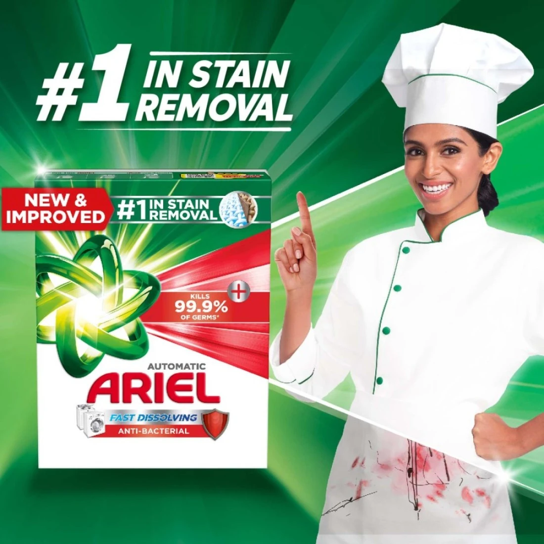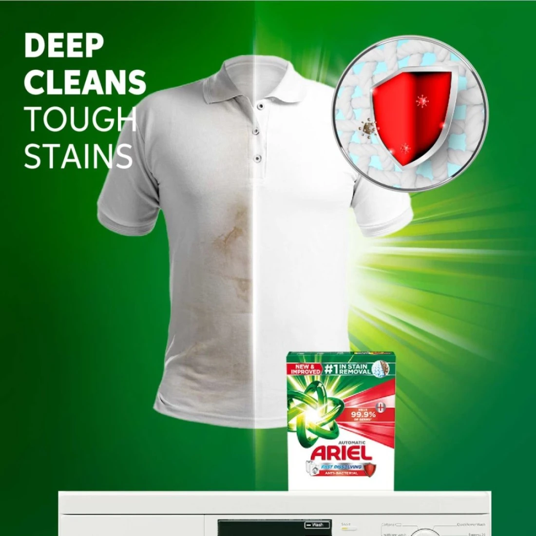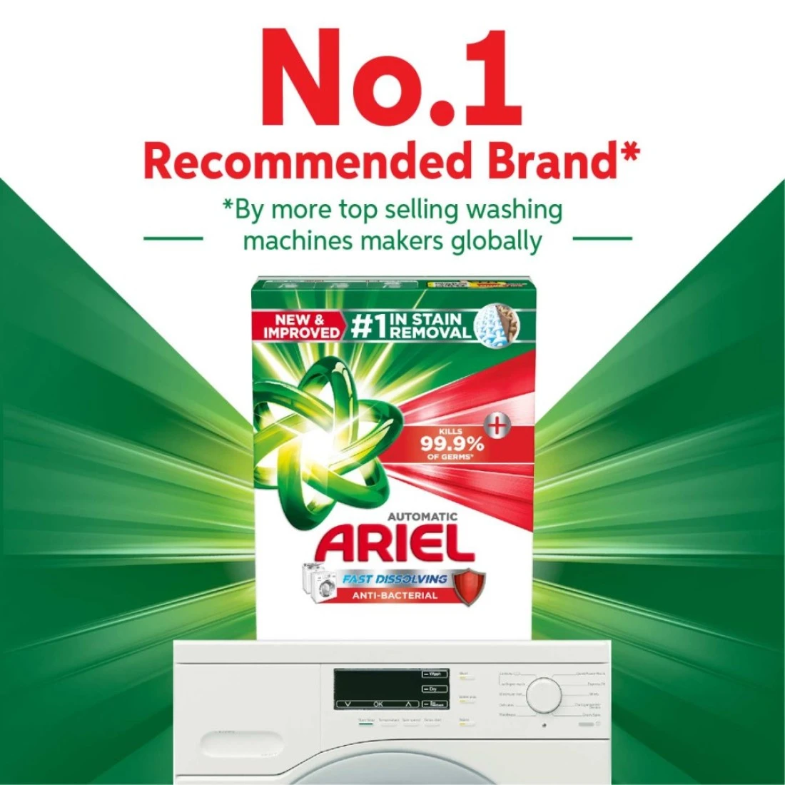 أريال مسحوق غسيل مضاد للبكتيريا سريع الذوبان للغسالة الأوتوماتيكية 2.5 كغ، حزمة من 2