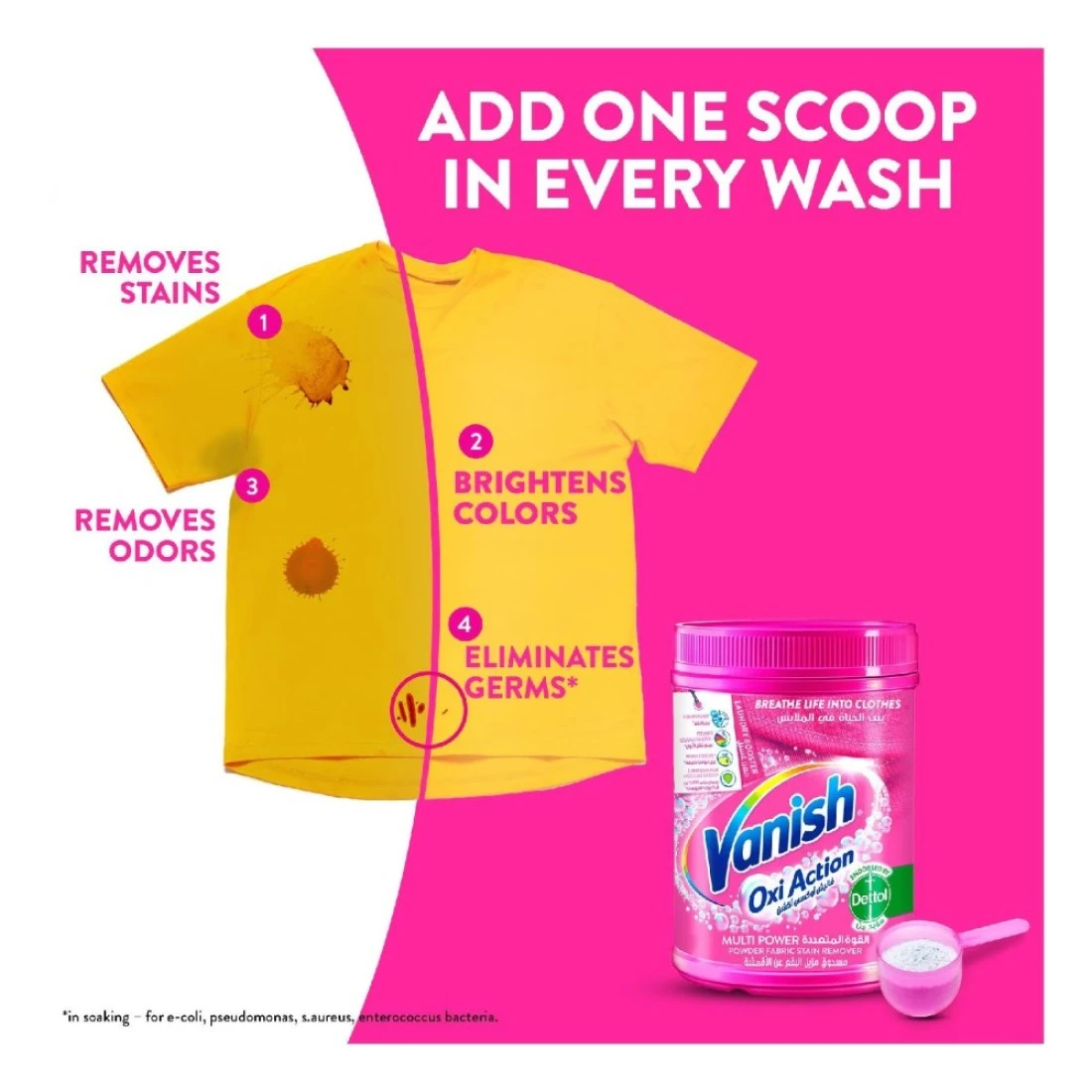 - بث الحياة في الملابس! تغلب على كل تلك البقع من ملابسك الملونة والبيضاء مع مسحوق فانيش أوكسي أكشن