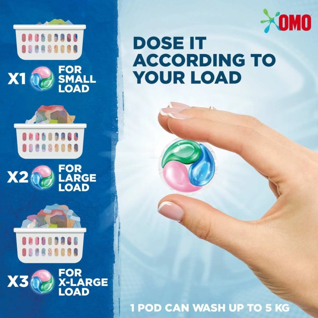 - كبسولات الغسيل أومو أسهل في الإستخدام وأكثر ملاءمة من منظفات الغسيل السائلة أو البودرة. كبسولة واحدة فقط تحتوي على ما يصل إلى 15 قطعة في حمولتك سوف تجعل غسيلك نظيفًا صحيًا وخاليًا من البقع.