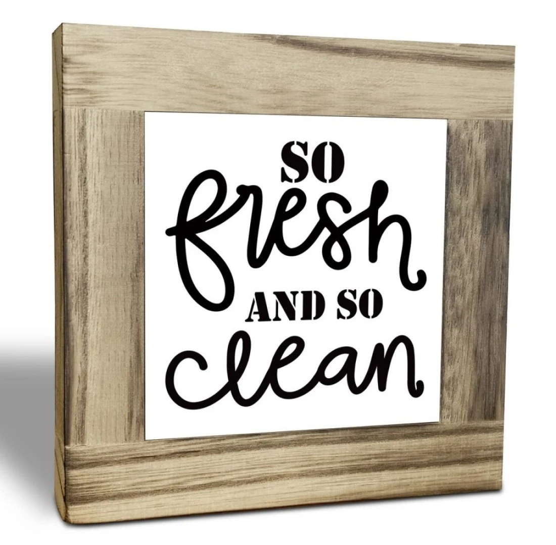EDCTO Wood Plaque Sign, So Fresh So Clean, Decorative Signage for Bathroom, 4.3x4.3x0.7inch