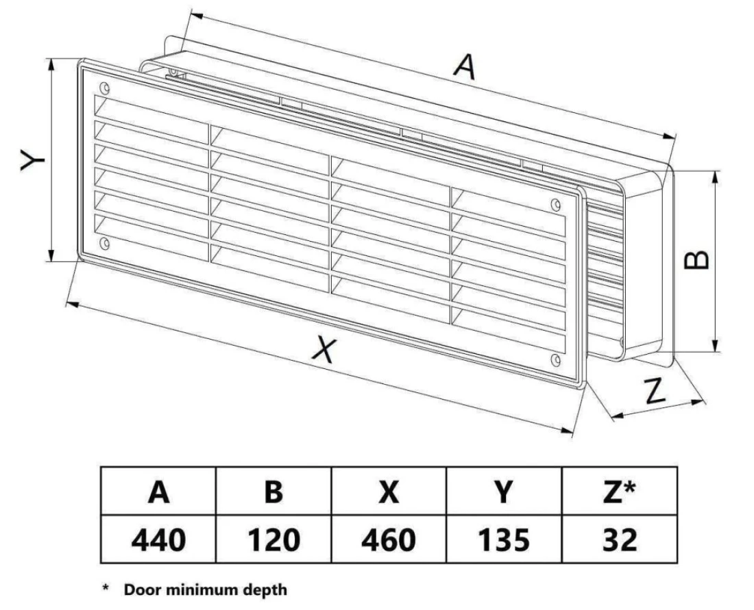 Bathroom Door Air Vent Grille 455mm x 135mm 18 x 53 inch Two Sided Ventilation Cover Brown