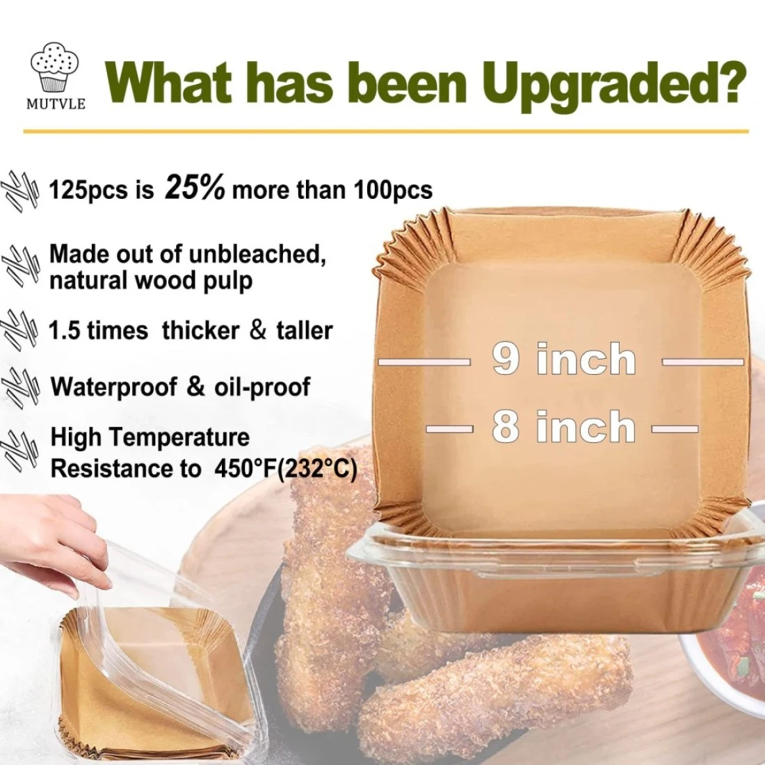 Large Air Fryer Disposable Paper Liners Square 9 Inch 125 Pcs Parchment paper liner for 58QT Air fryer Oilproof Waterproof Parchment Baking Paper for Baking Roasting Microwave
