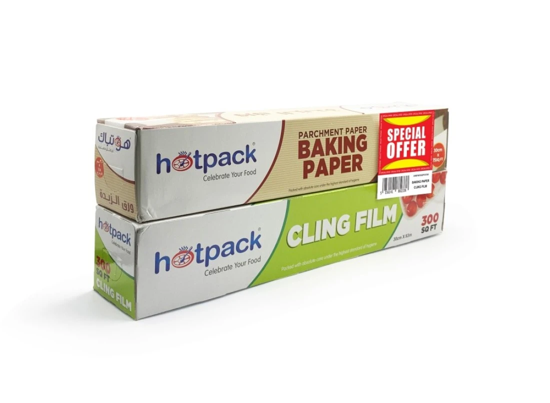 Hotpack Cling Film Wrap 30cm X 300 SqFt + Baking Paper 30cm X 75 SqFt 15% OFFER