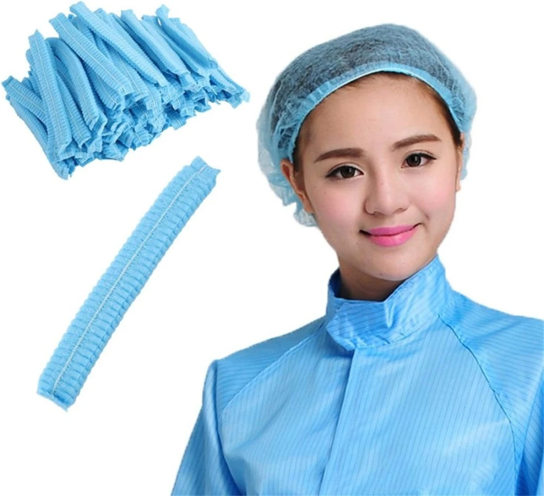 طقم أغطية شبكة شعر زرقاء اللون 100 قطعة - غطاء للرأس - أغطية منتفخة