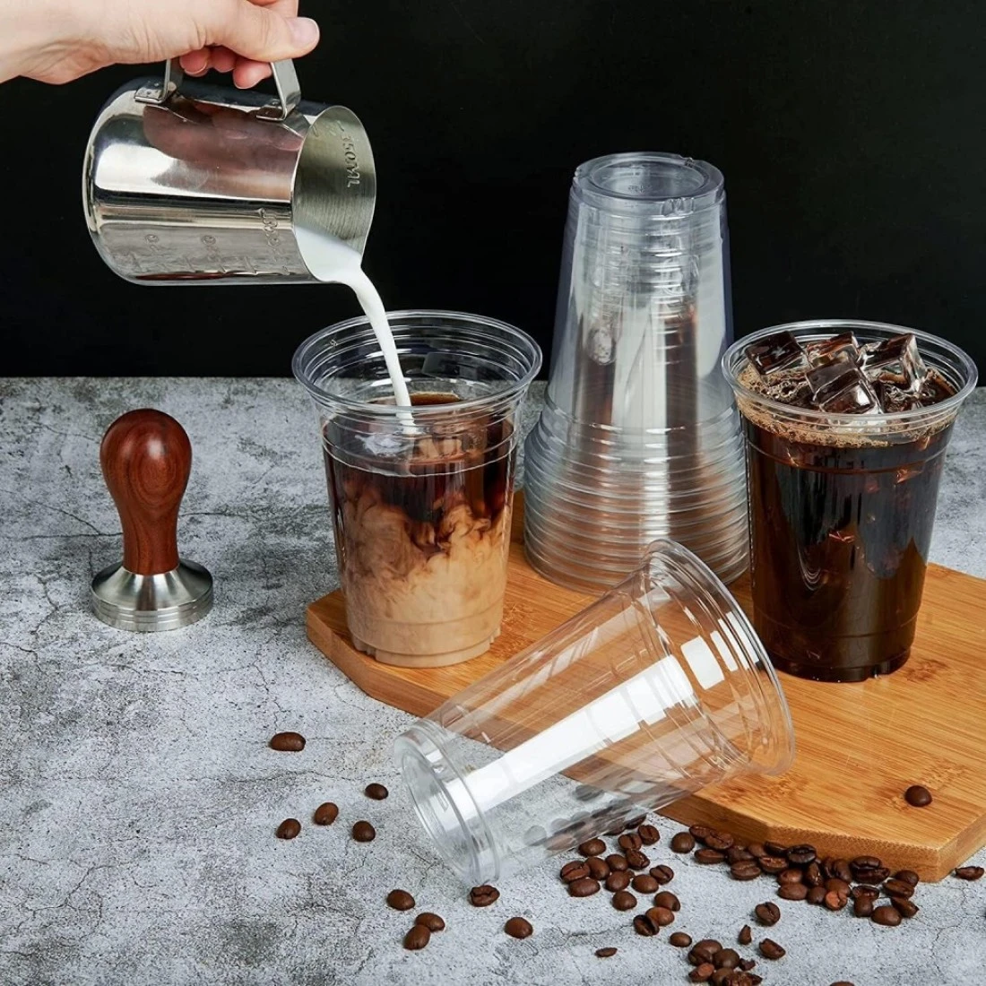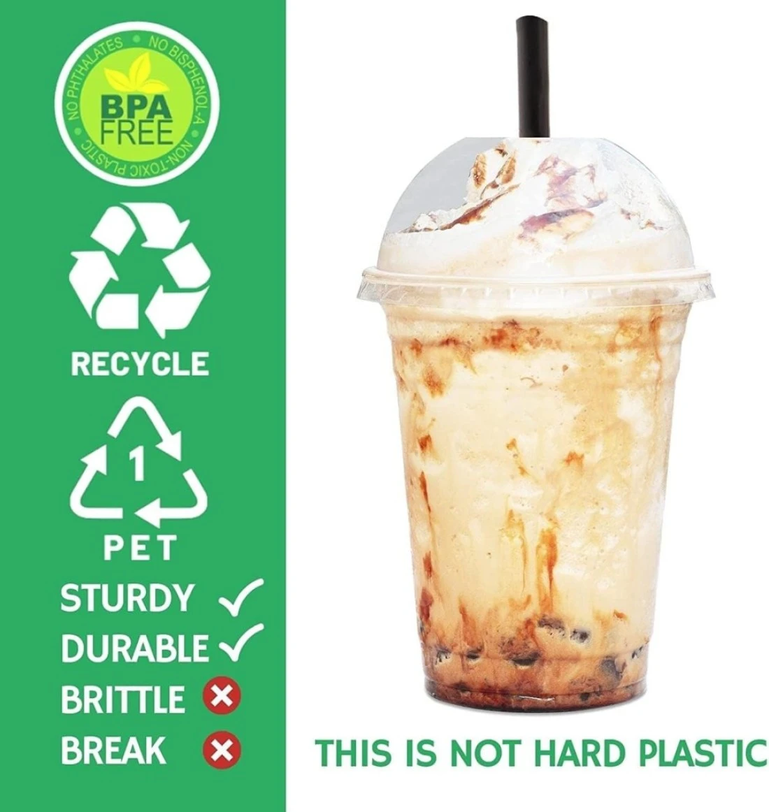 Vsell24™ 50PC Disposable Drinking Plastic Cup 10oz For Smoothie Coffee Water Juice Cups With Dome Lid Clear…