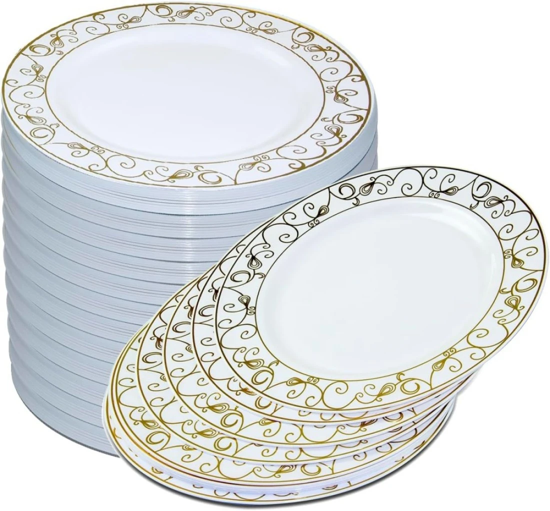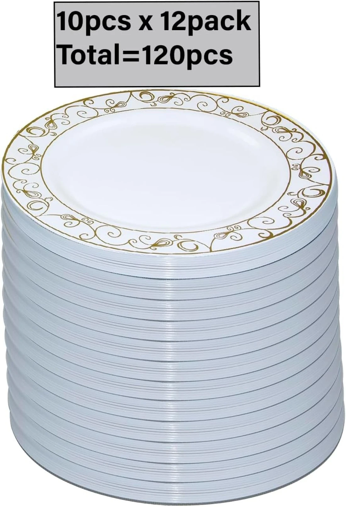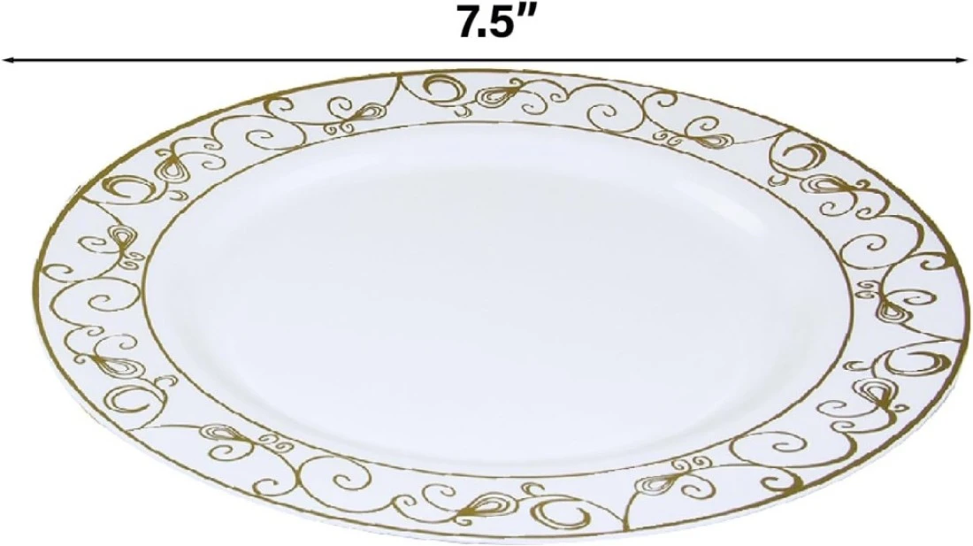 7.5'' White & Gold Disposable Plastic Plates – 24g, Sturdy & Elegant – Pack of 120 plates