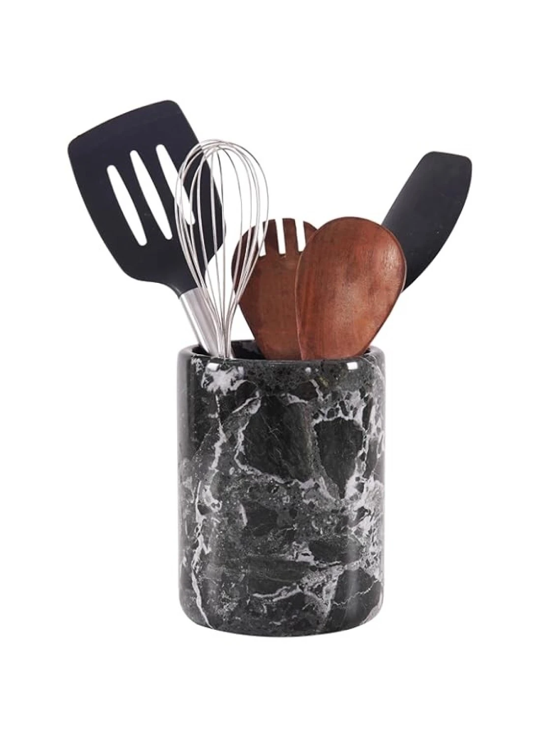 Radicaln Marble Utensil Holder 6.5'' inches Black Handmade household essentials for modern home decor - Spatula holder for kitchen countrtop organizers and storage, Cutlery drawer organizer