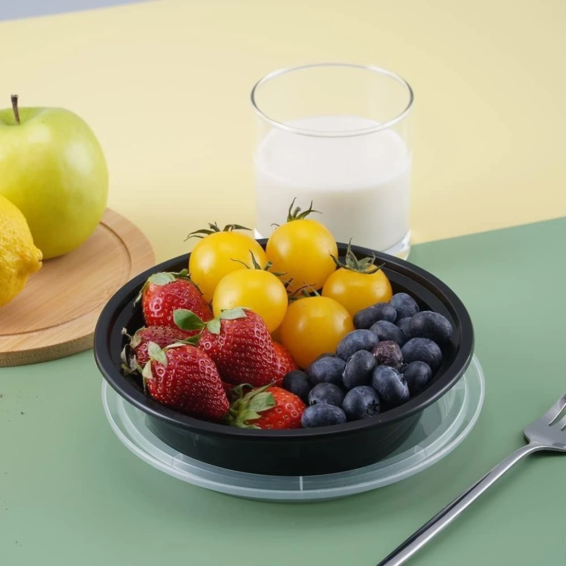 Go2Camps Alsaqer [20 Pack] Compartment Round Black Base With Lids Food Storage Container(32 Oz) Ro32, Disposable Food Container, Meal Containers, Lunch Boxes Microwave, Freezer Safe (1 - Compartment)