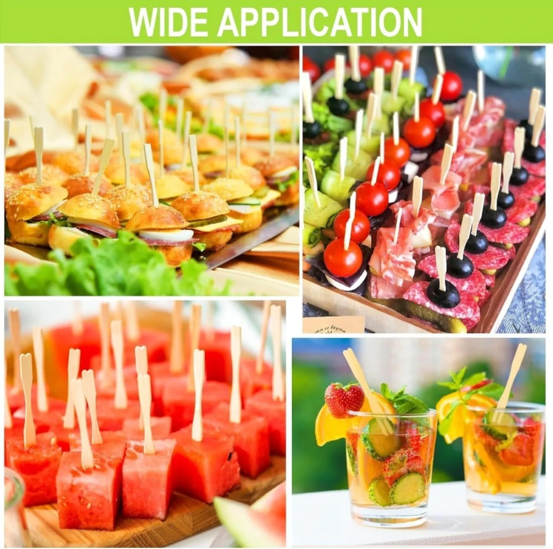 LAVISH Wooden Fruit Forks, Bamboo Fruit Fork, Two Prongs Fruit Forks Disposable Cocktail Food Picks Blunt-end Forks