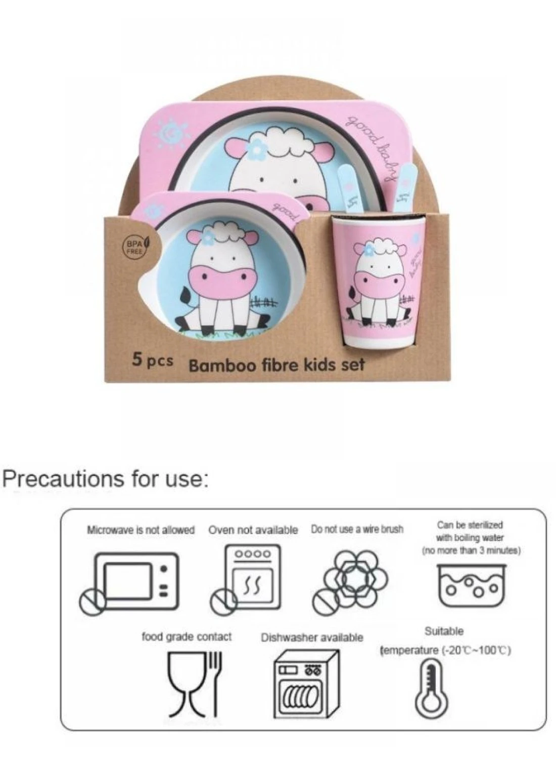 5PCS Unbreakable Kids Plate and Bowl Set for Healthy Mealtime, Bamboo Children Dishware Set with Plate, Bowl, Cup, Fork and Spoon, BPA Free Dishwasher Safe, Sheep