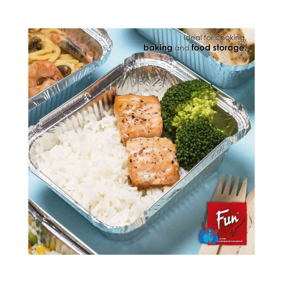 فان حاوية طعام من الألومنيوم مع غطاء للإستعمال مرة واحدة - فضي 1.98 لتر 10 قطعة