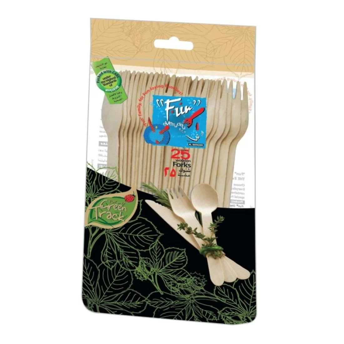 فن غرين تراك شوك طعام خشبية 6.5 بوصة 25 قطعة - بني