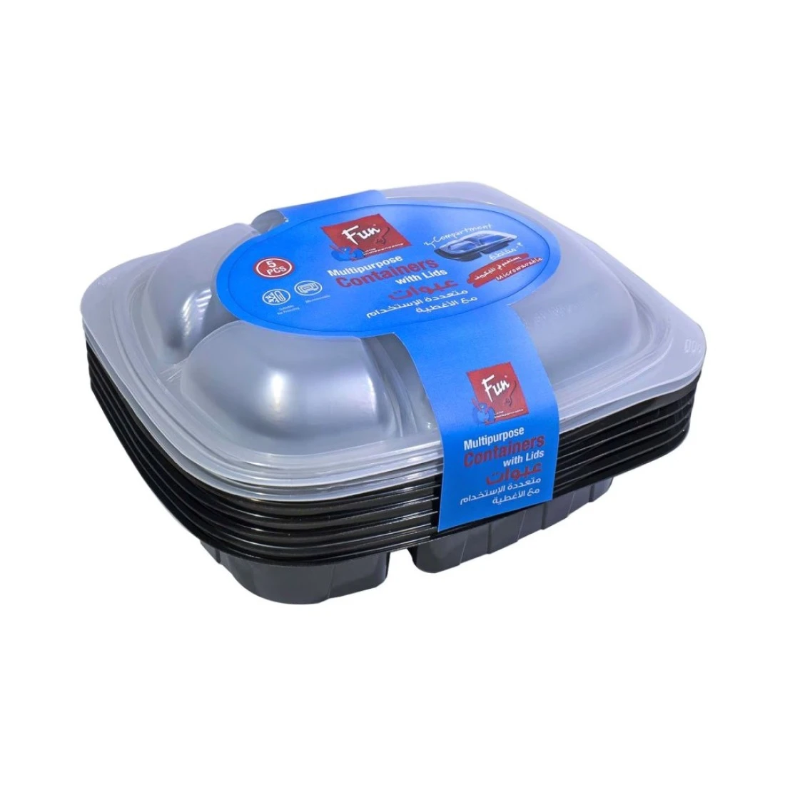 فان حاويات بلاستيكية متعددة الإستعمالات ذات 3 أجزاء مع غطاء - أبيض وأسود 148 ملل 5 قطع