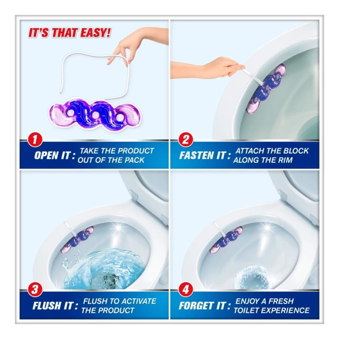- كتلة الحافة الفريدة على شكل مموج تنعش المرحاض لمدة تصل إلى 4 أسابيع وتوفر رغوة تنظيف أكثر بمرتين مع كل تدفق بينما يمنحك عطر مروج اللافندر تجربة ممتعة.
