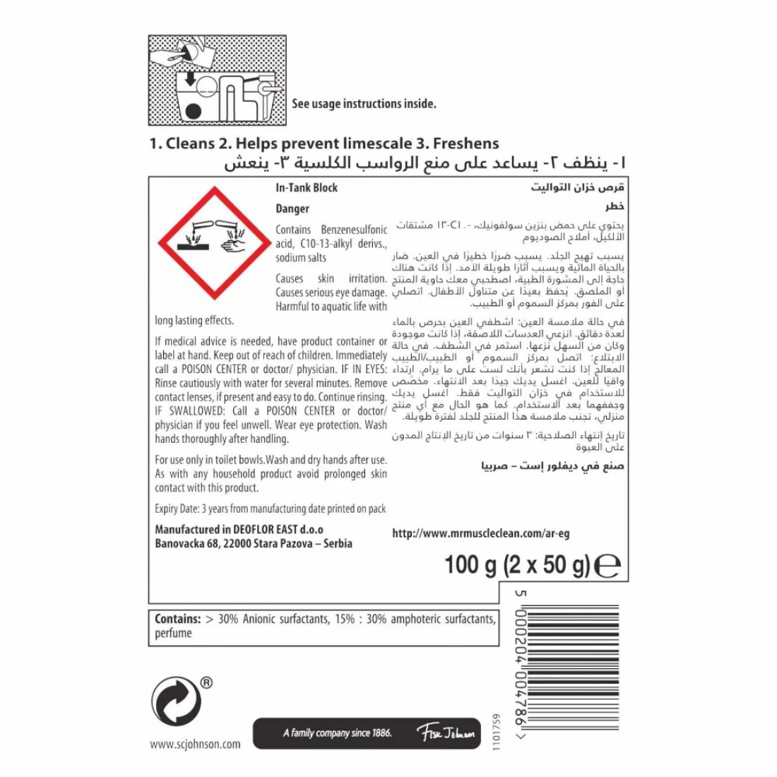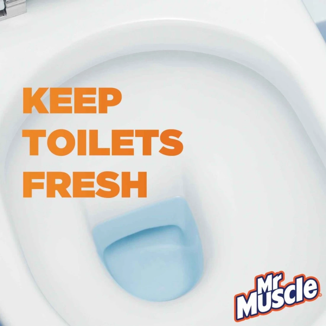 - يحافظ منظف مستر ماسل بلوك برائحة المحيط على نظافة المرحاض وانتعاشه حتى 300 شطفة