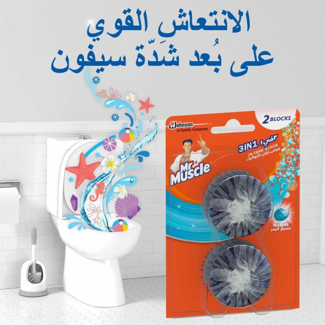 مستر ماسل 3 في 1 قطع لتنطيف مقعد التواليت برائحة البحر 50 غرام حزمة من 2