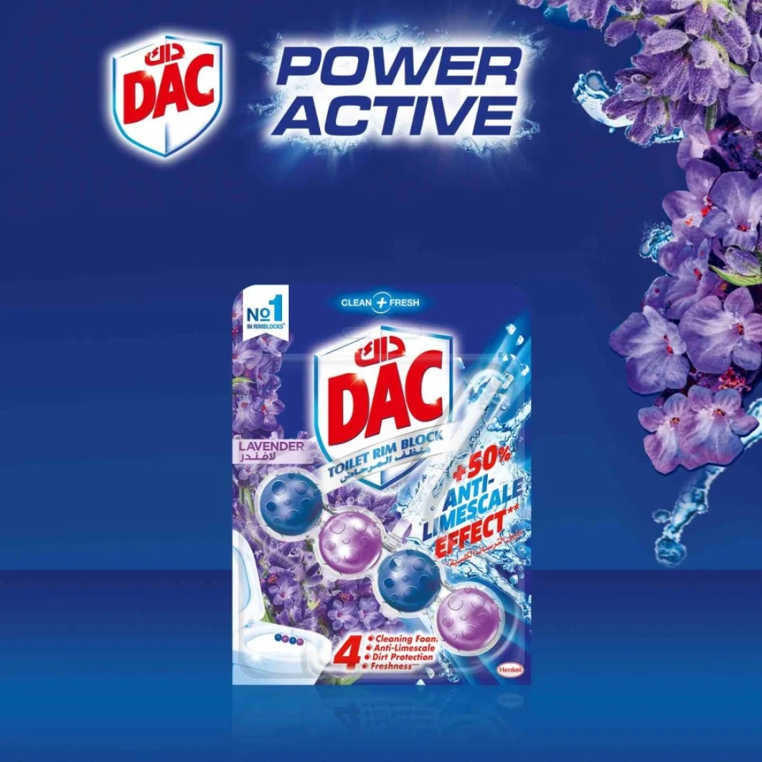 - 2 - تقنية بأربع وظائف: بفضل التركيبة ذات الأربع وظائف (رغوة التنظيف مكافحة تراكم الجير الحماية من الأوساخ والإنتعاش الإضافي)، تضمن داك تأثير تعطير الهواء في حمامك.