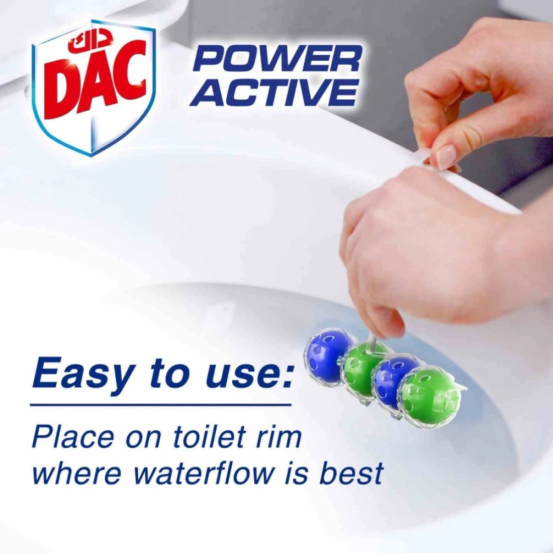 - 1 - تقنية معطر الهواء: تضمن تقنية داك قطع تنظيف وتبيض المراحيض على شكل كرات ملء الحمام برائحة منعشة لفترة طويلة.