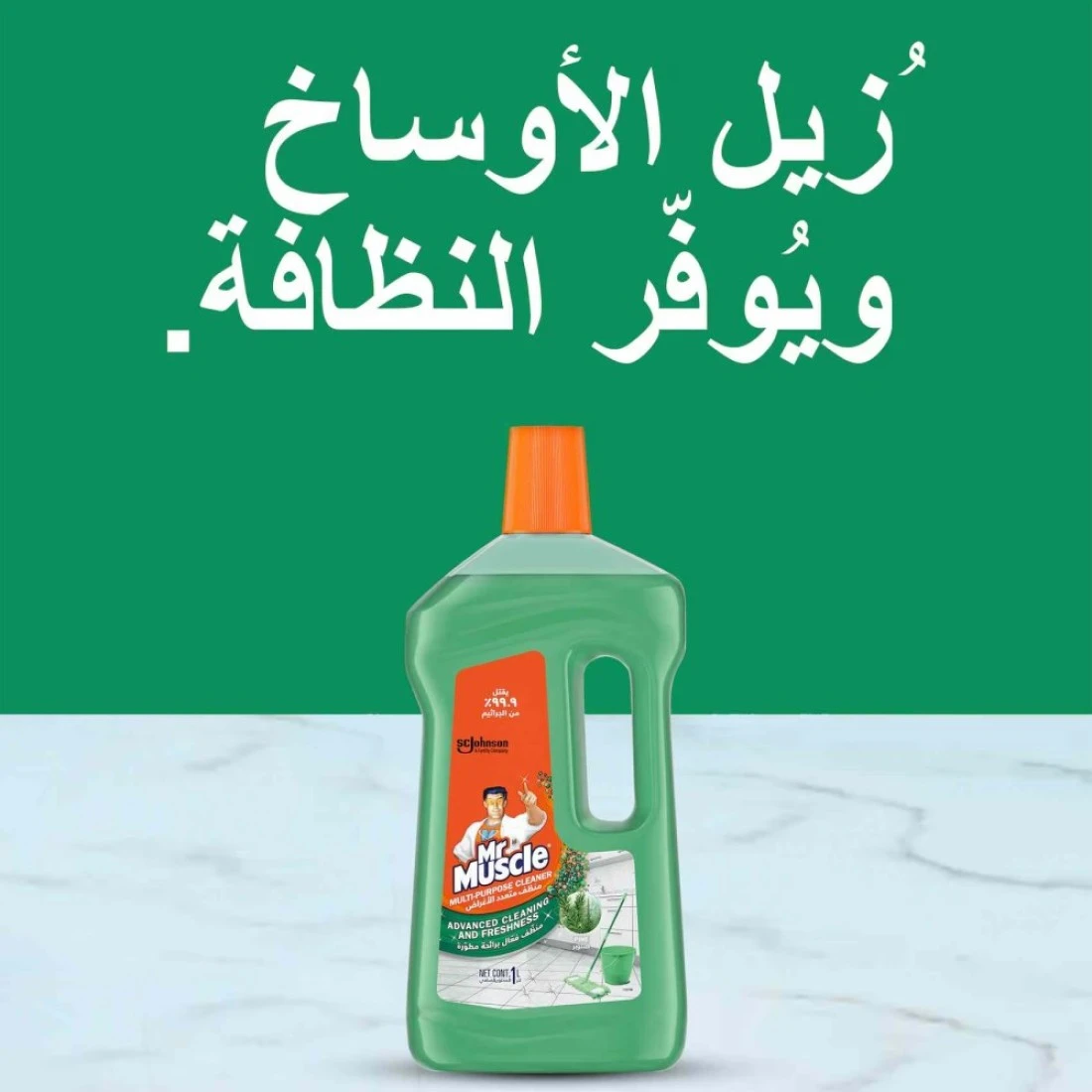 - منظف الأرضيات متعدد الاستعمالات من مستر ماسل يقدم تنظيفًا سريعًا ،متقدمًا ومنعش لمختلف انواع الأرضيات