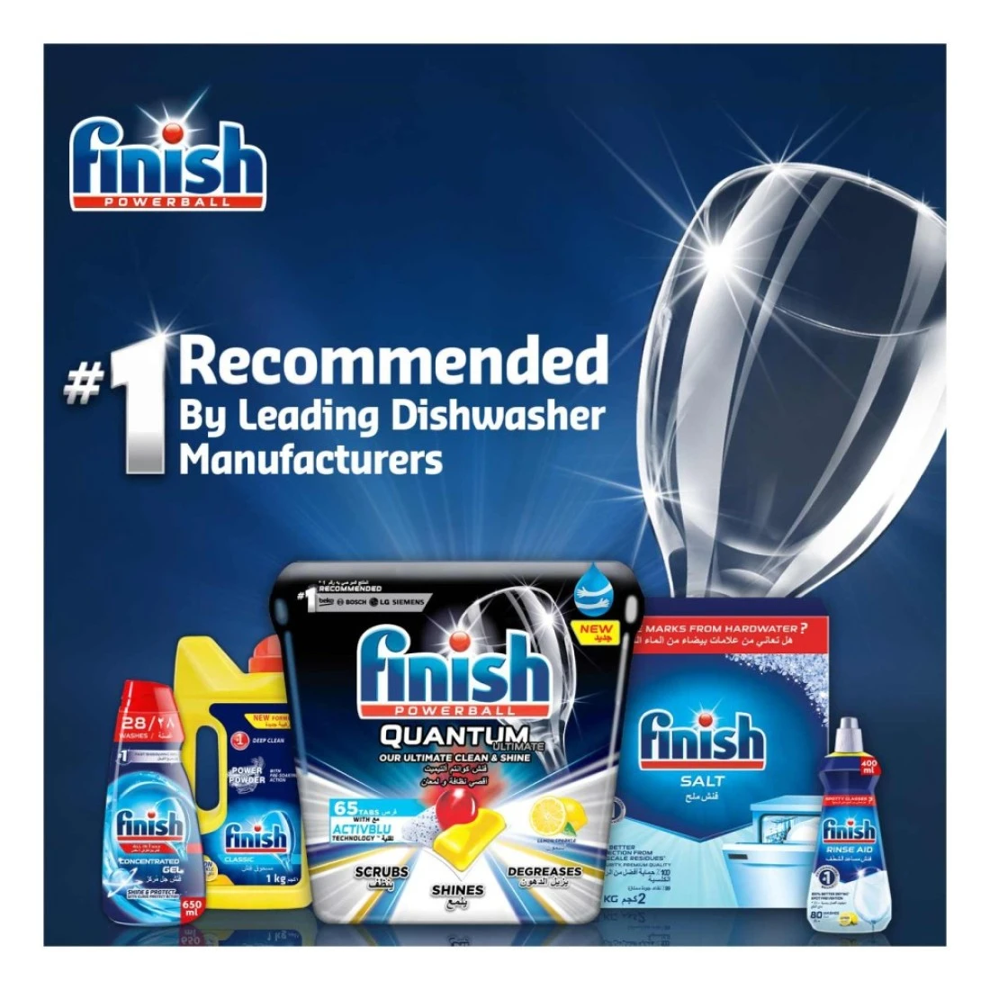 - فينيش هي العلامة التجارية رقم 1 الموصى بها من قبل الشركات المصنعة الرائدة لغسالات الصحون مثل بوش، سيمنز، إل جي، بيكو وما غيرهم li>