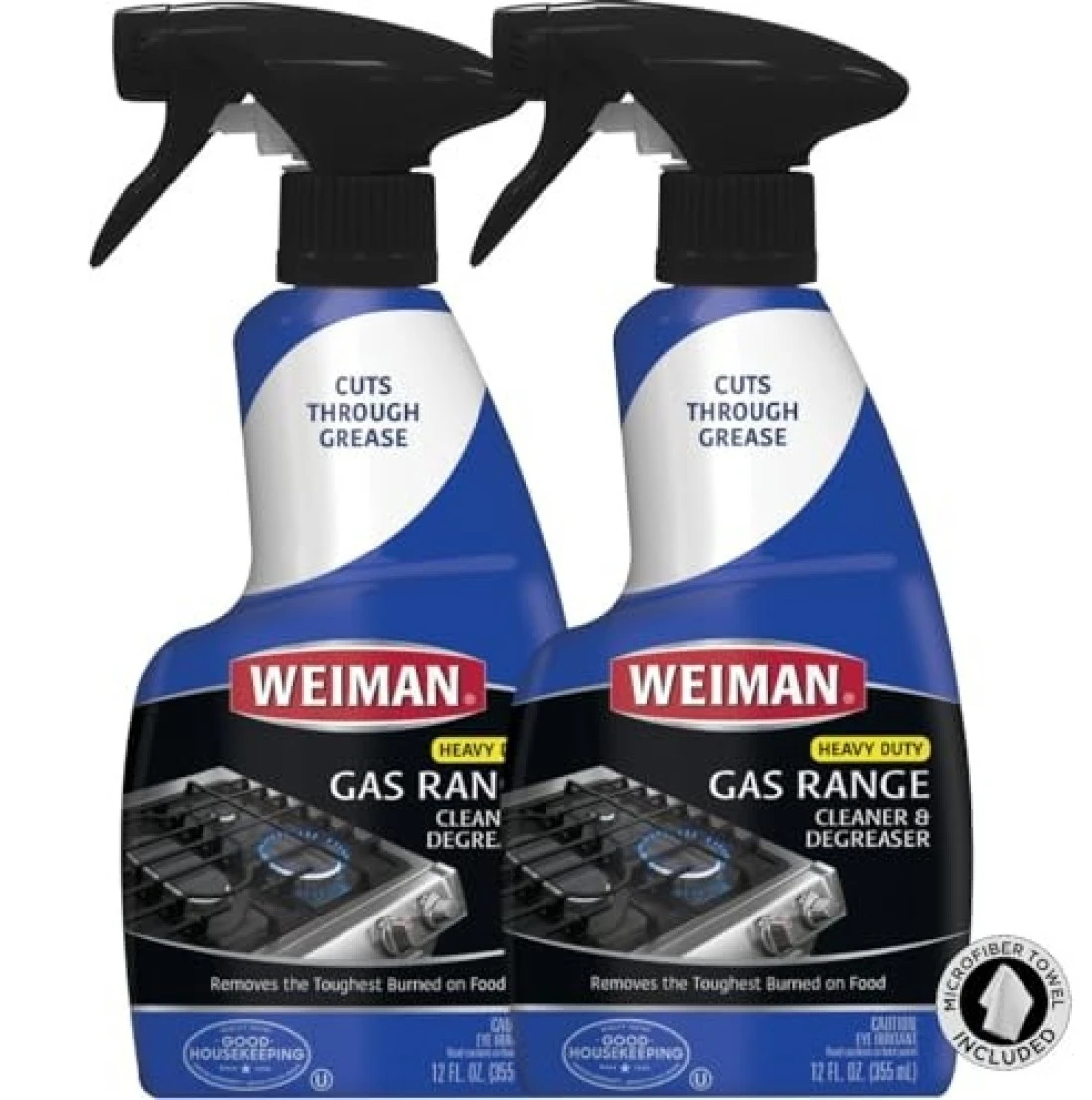Weiman Heavy Duty Gas Range & Stove Top Cleaner and Degreaser - 2 Pack, 24 Ounces with MicroFiber Cleaning Towel