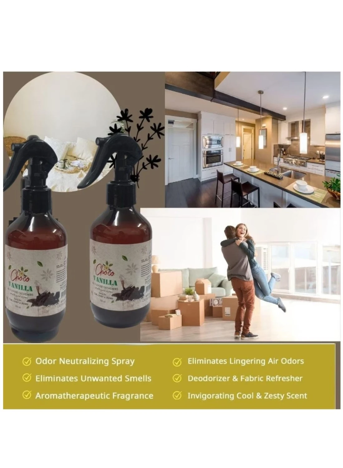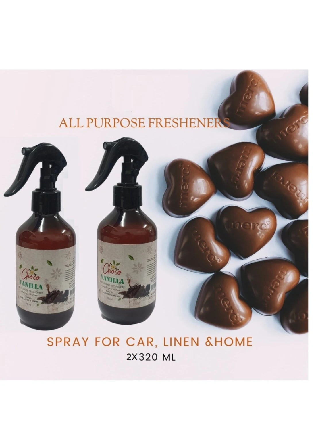 320ml Chocolate and Vanilla Room Air Freshener - 2-Pack for Home, Office, Carpets, and Pillows - Odor Eliminator