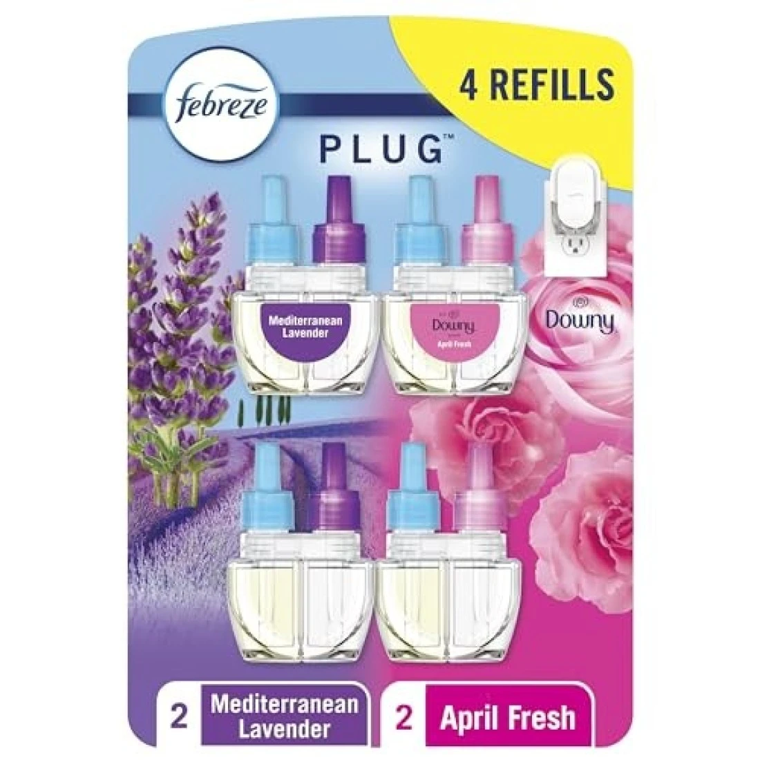 Febreze Odor-Fighting Fade Defy PLUG Air Freshener,Downy April Fresh, Mediterranean Lavender, .87 fl. oz. Oil Refills, 4 Refills (2 of Each)