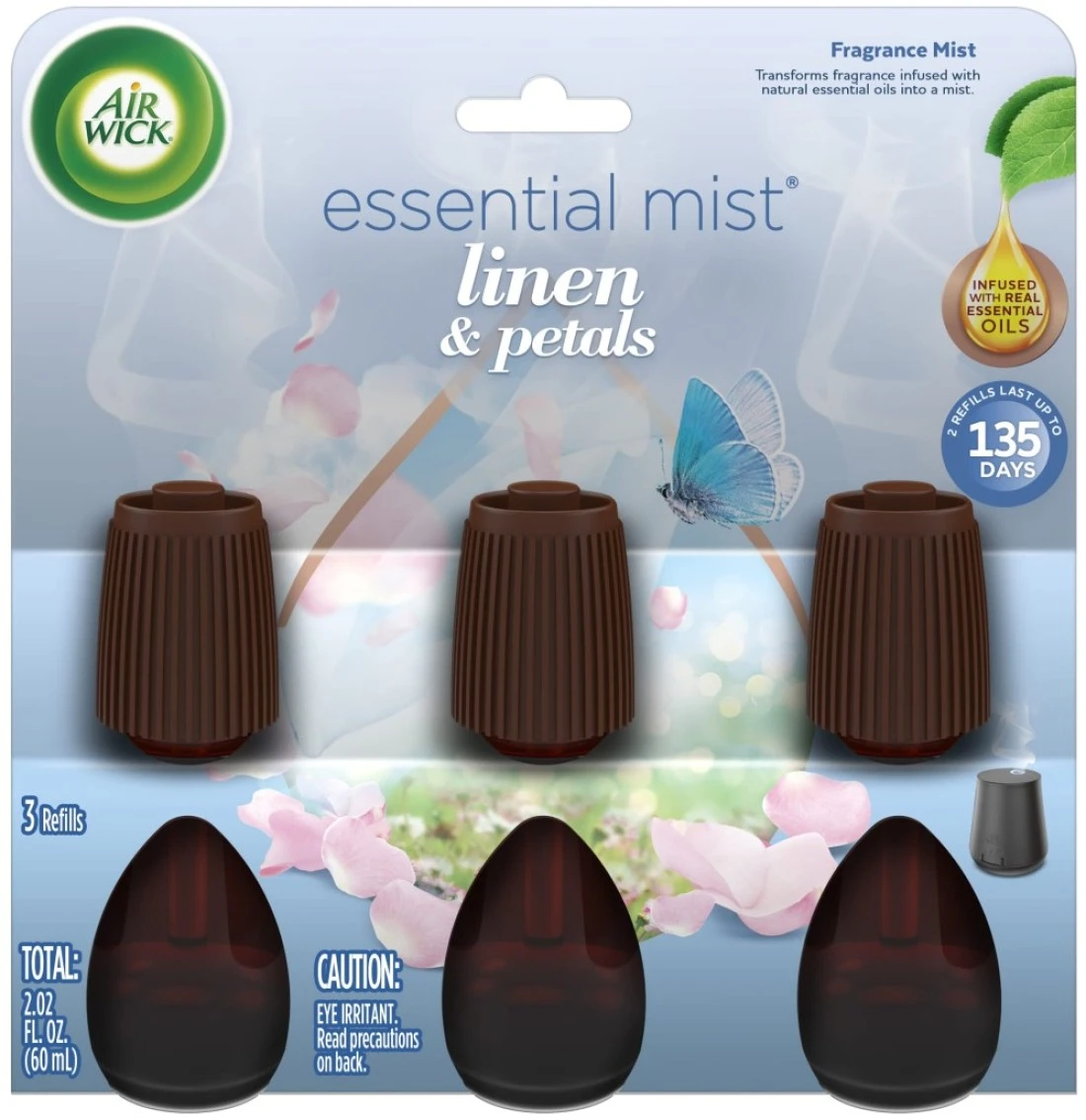 Air Wick Essential Mist Refill, 3ct, Linen & Petals, Air Freshener, Essential Oils