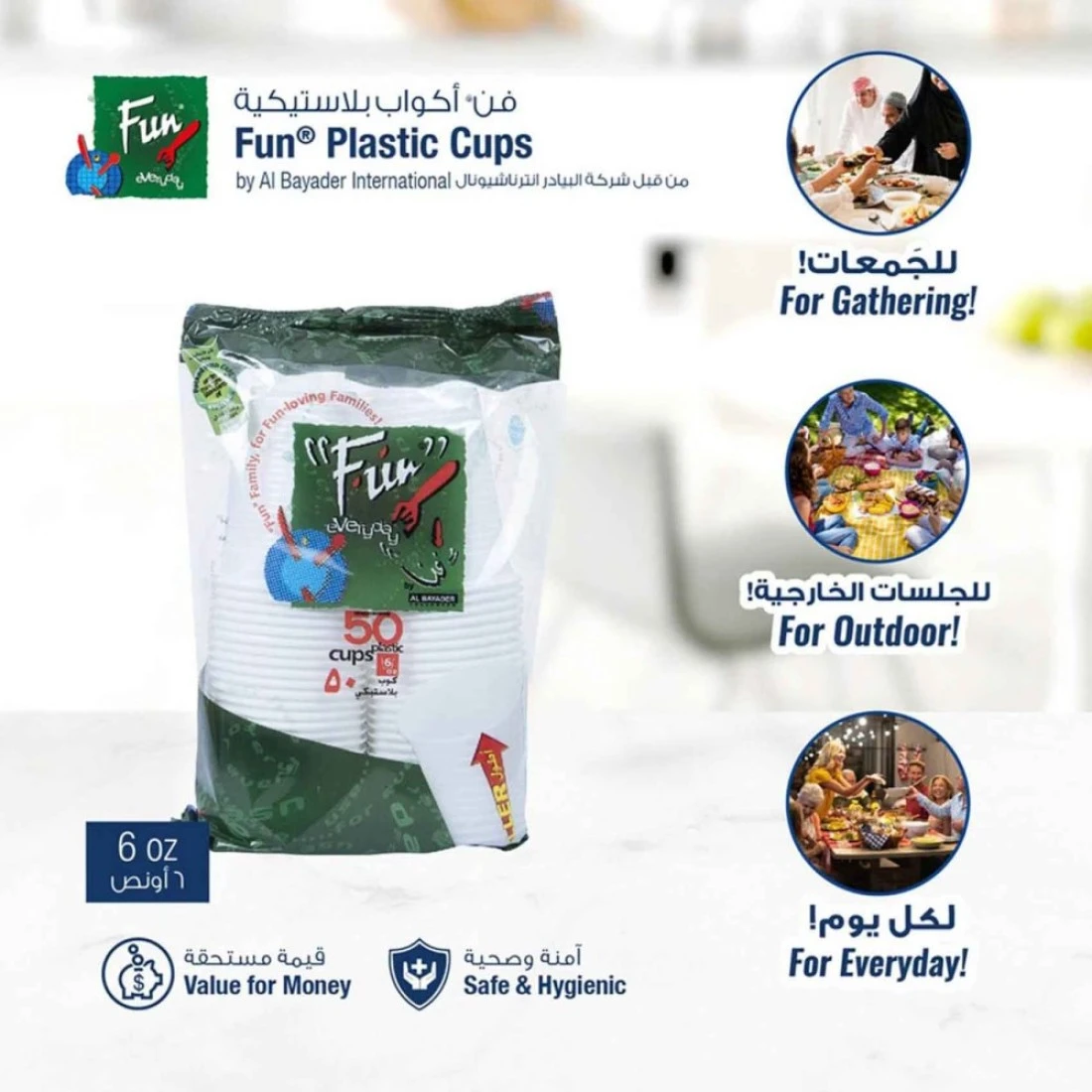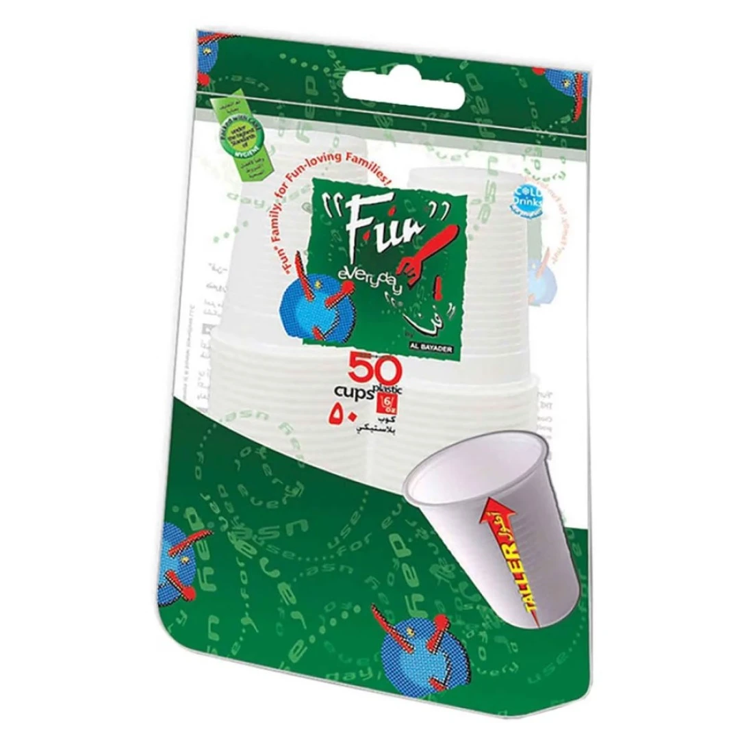 فن أكواب بلاستيك 200 ملل أبيض 50 قطعة