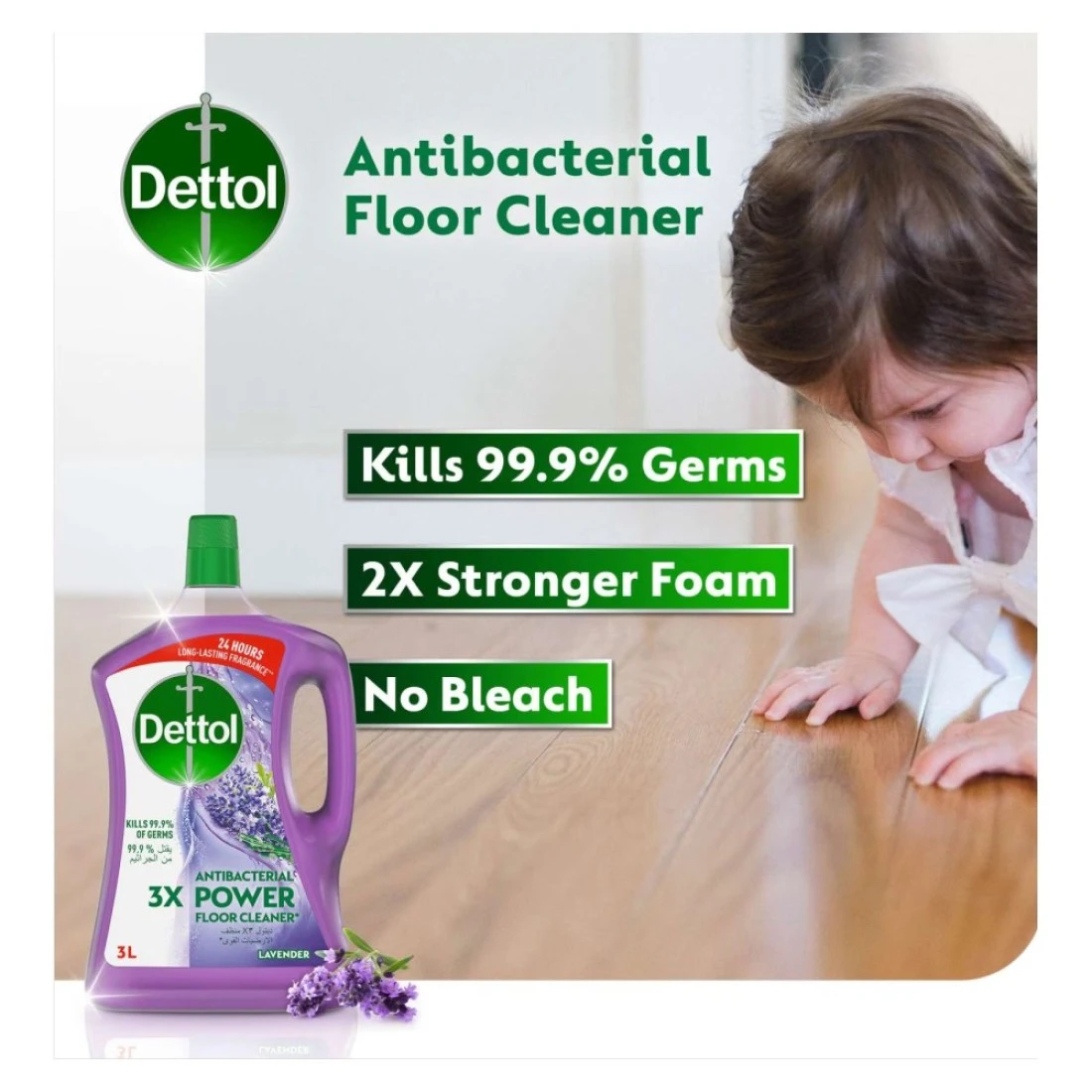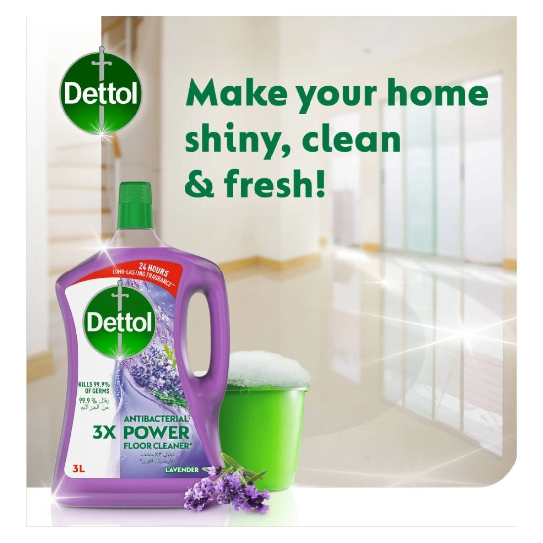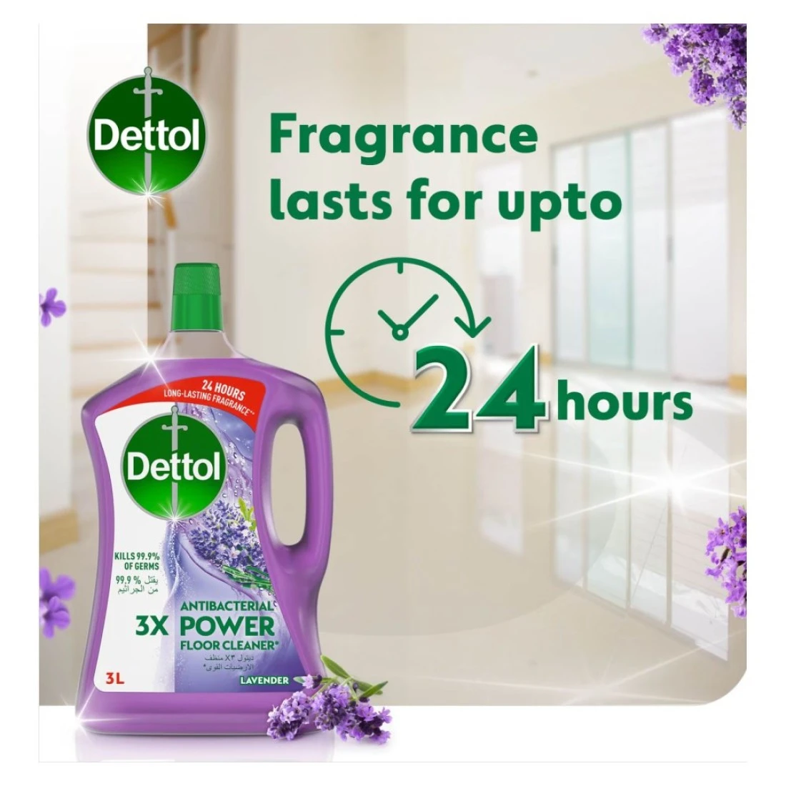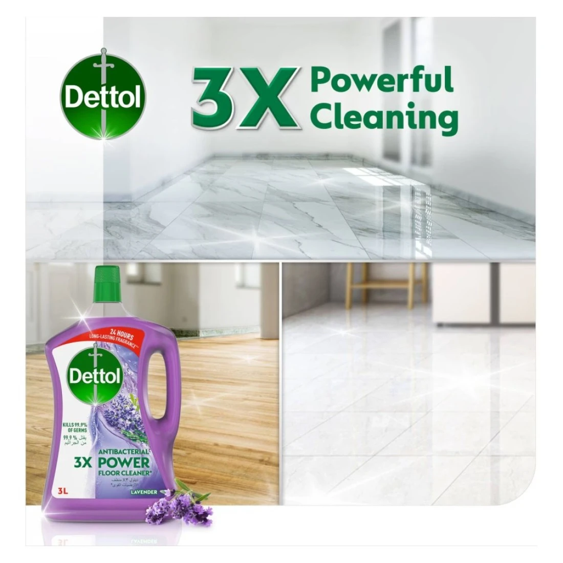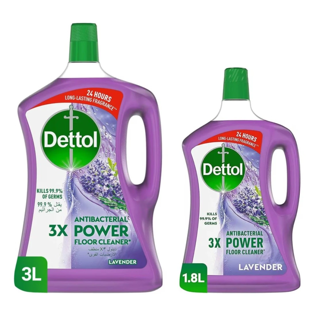 ديتول 3X منظف أرضيات قوي مضاد للبكتيريا برائحة الخزامى 3 لتر + 1.8 لتر