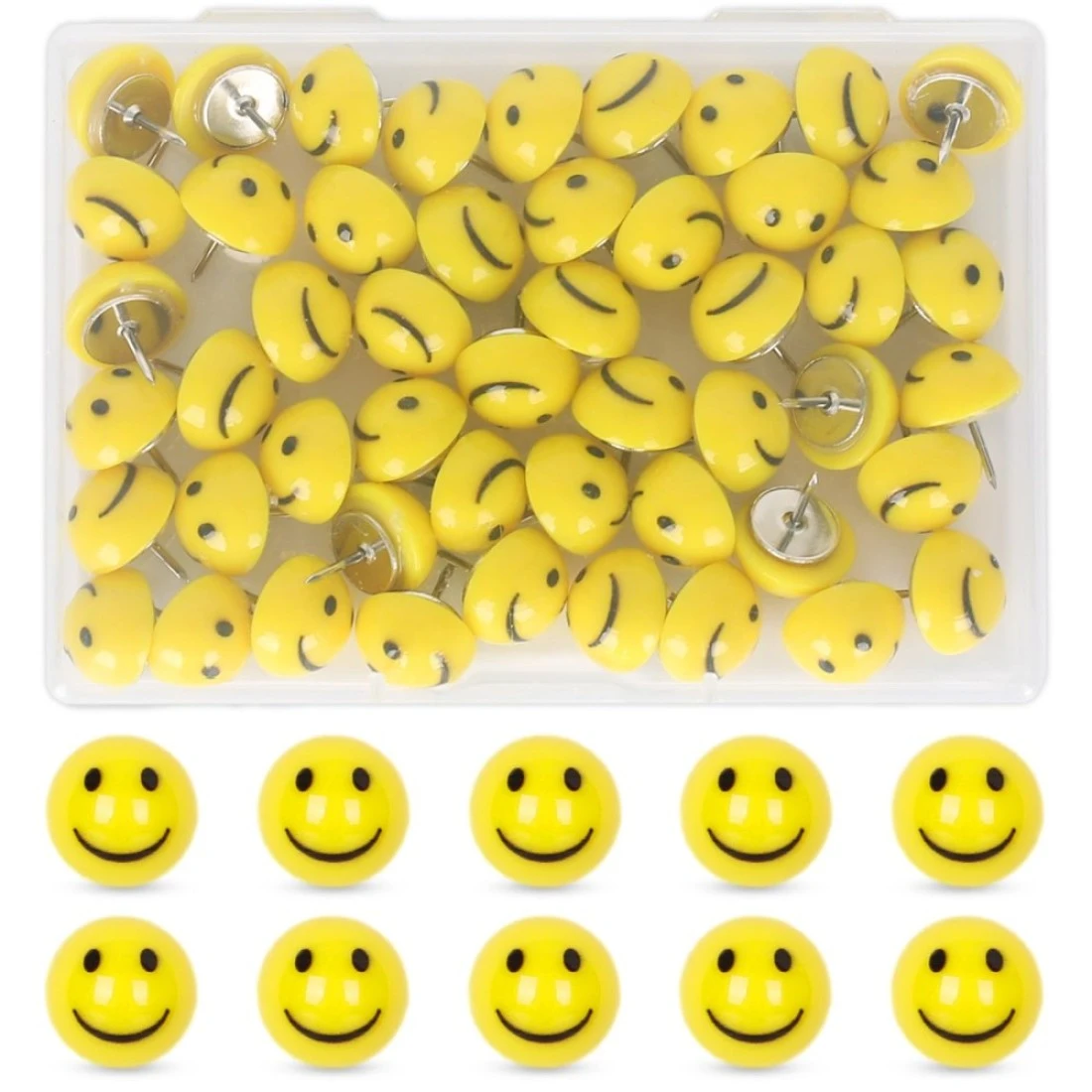 Whaline 50Pcs Resin Happy Face Push Pins Smile Face Decorative Thumb Tacks Cute Yellow Cork Board Thumbtacks for Bulletin Board Photo Wall Decor Office Supplies
