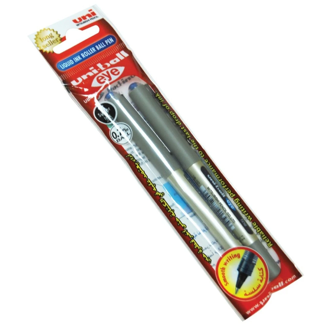 يوني-بول أي قلم حبر جاف دقيق بكرة دوارة 0.7 ملم، 2 قطعة - أزرق