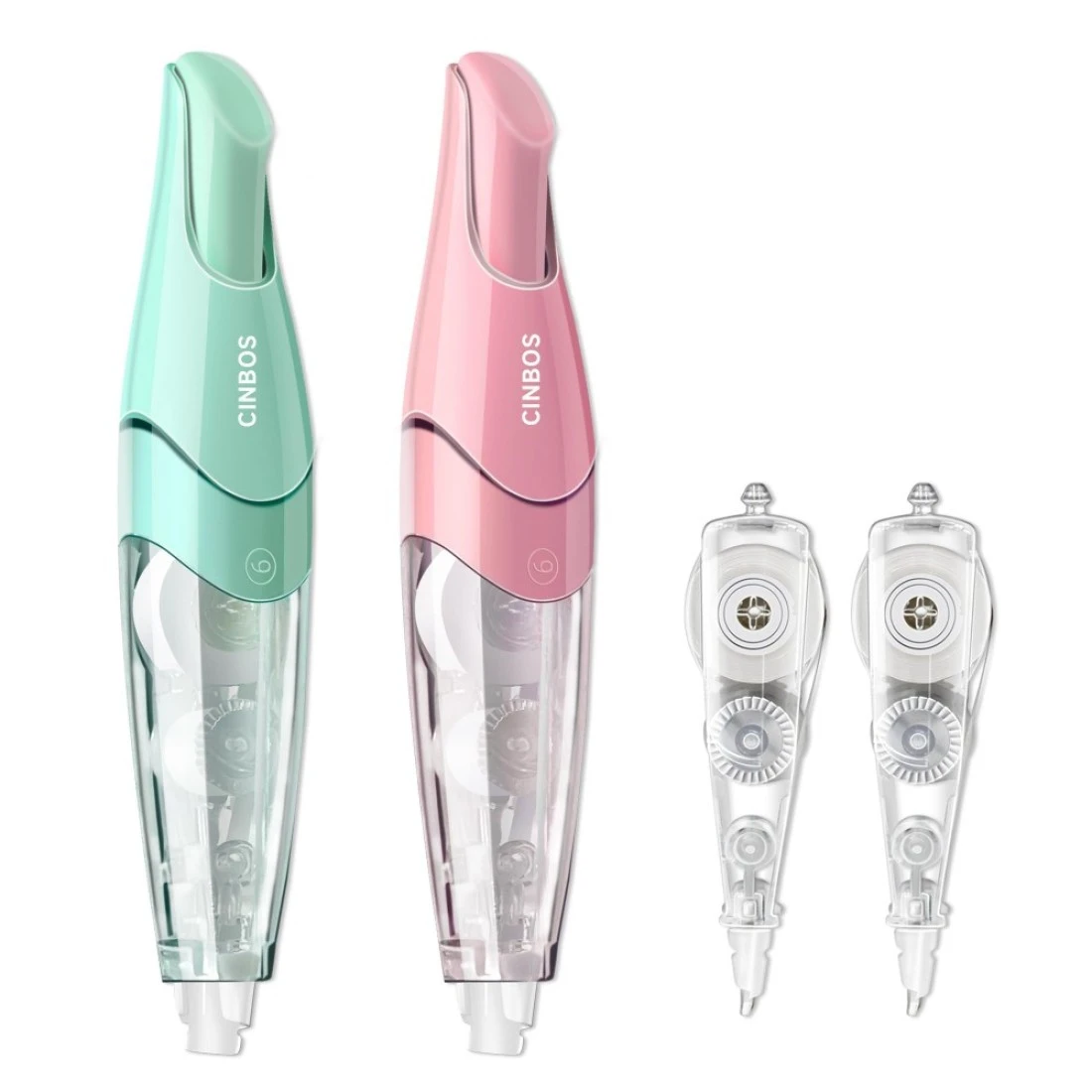 CINBOS Refillable Retractable White Out Correction Tape, White Out Tape with 2 Extra Refills, Cute White Out for Office Supplies, 4 PCS (CS-25)