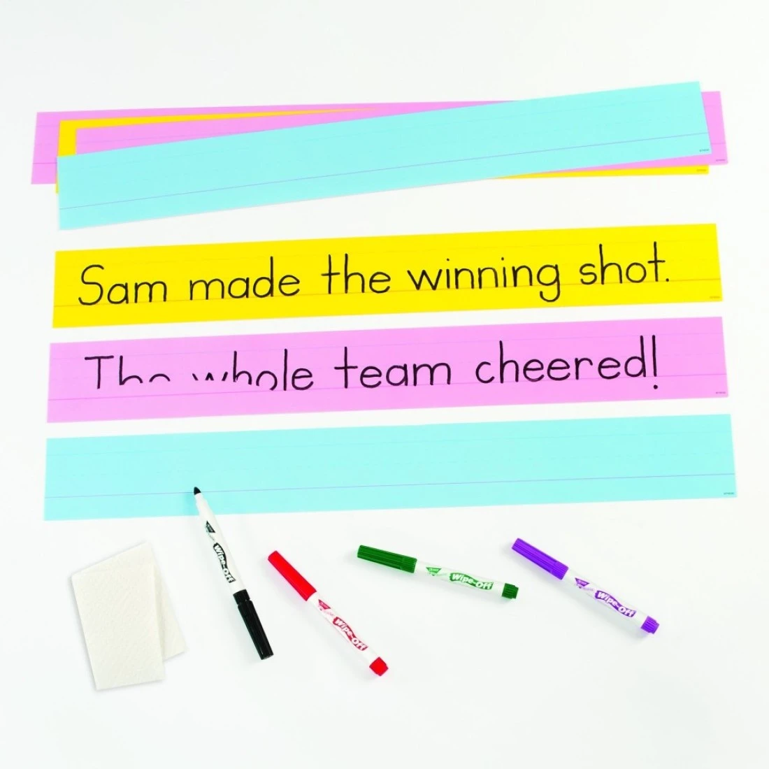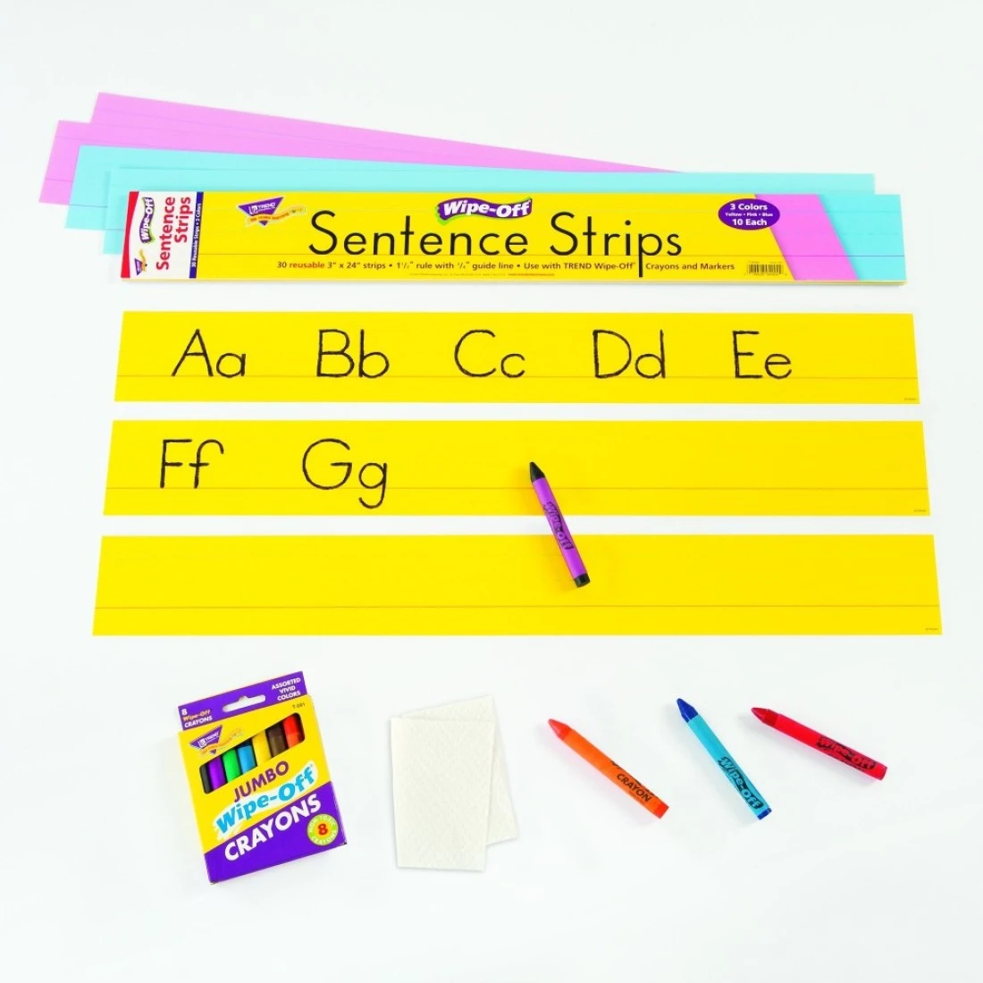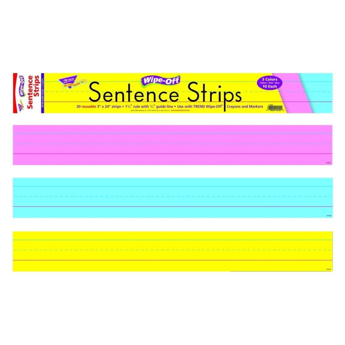 TREND WipeOff Sentence Strips 24 X 3 Blue Pink Yellow 30Pack