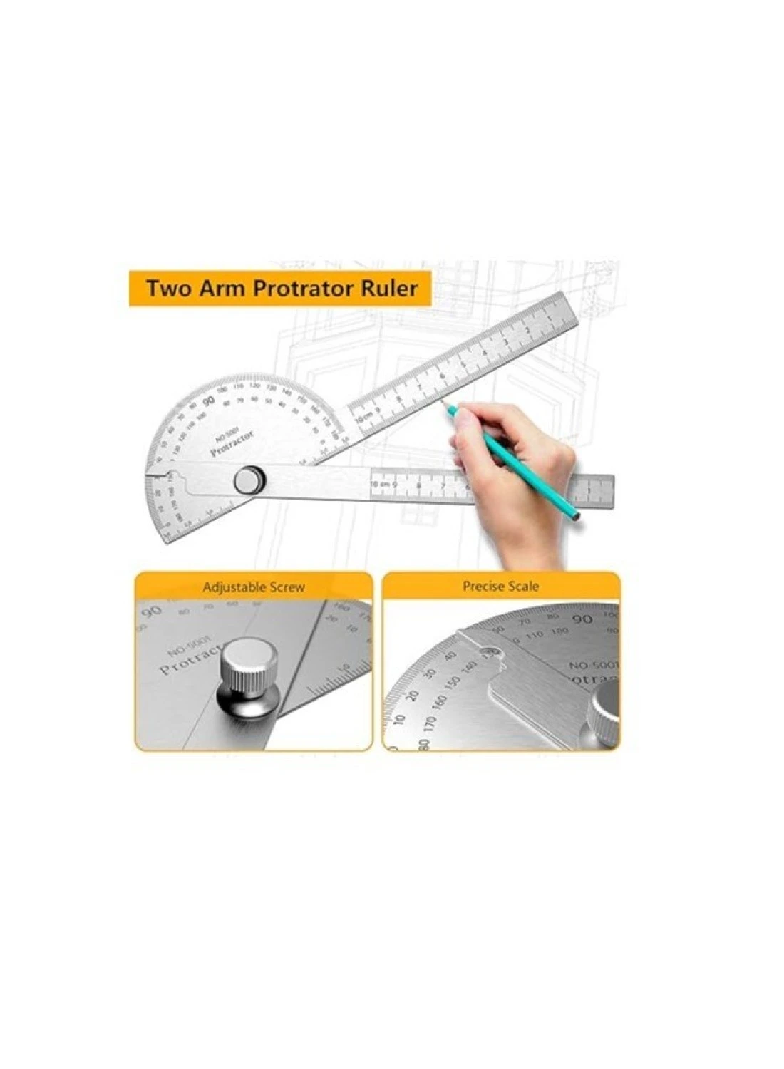 AL ARQAM Stainless Steel Protractor 180 Degrees Two Arm Ruler Adjustable Angle Protractor Woodworking Ruler Craftsman Angle Measure Tool