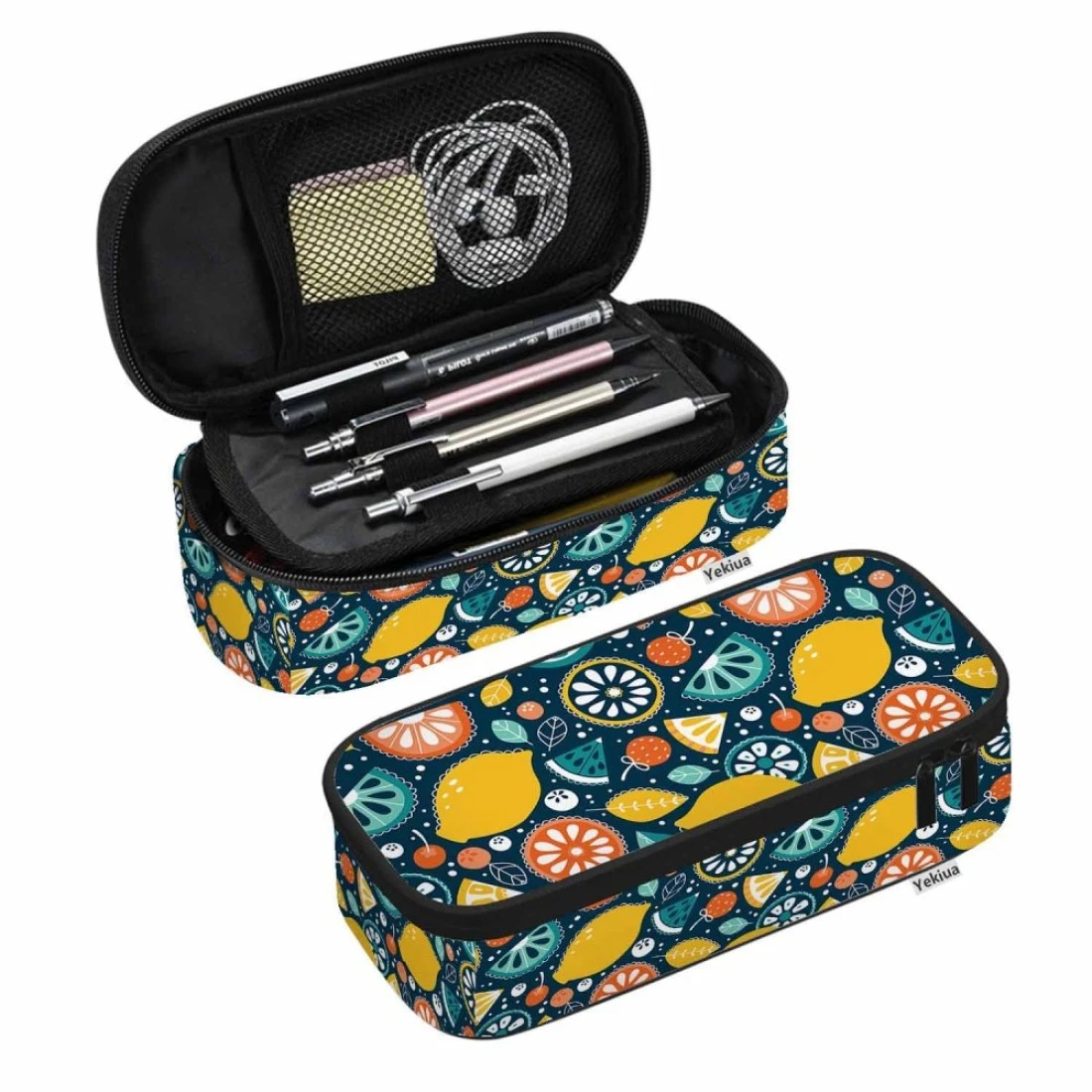 Yekiua Lemons Lemonade Pencil Pouch Bright Cute Citrus Fruit High Capacity Pencil Case Stationary Bag Cosmetics Bag